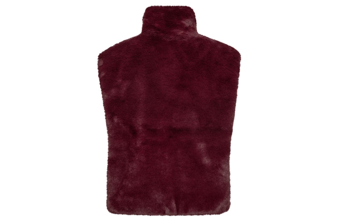 Freequent FQFONY-WAISTCOAT 7051 Port Royale. Dit rechtvallende model is voorzien van een opstaande kraag met trekkoord en is mouwloos. Deze rode gilet van Freequent sluit door middel van een rits en heeft twee steekzakken aan de voorzijde. Dit model is uitgevoerd in een faux fur kwaliteit.