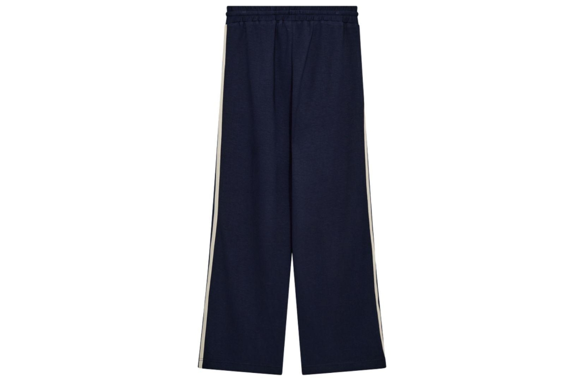 Freequent broek 207444. Dit straight fit model sluit door middel van een elastische boord met trekkoord. Deze donkerblauwe broek van Freequent is afgewerkt met een sportieve bies langs de zijkanten en voorzien van twee steekzakken aan de voorzijde. Het model is uitgevoerd in een comfortabele stretchkwaliteit.