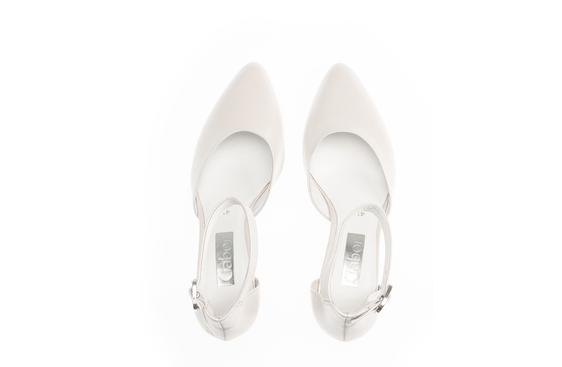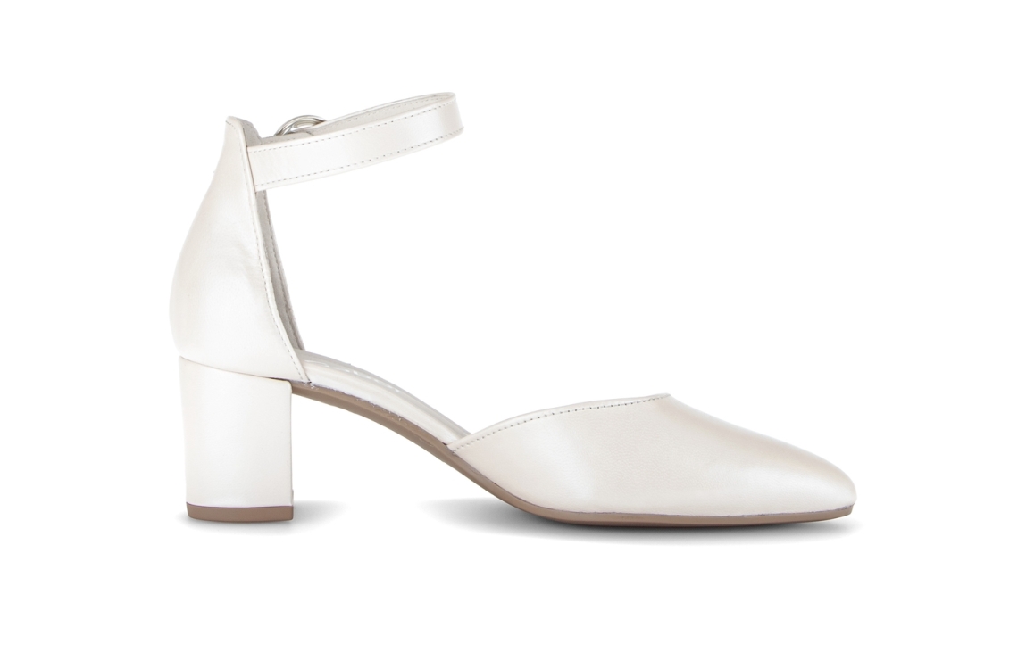 Gabor pumps 81.340.60. Deze off-white pump van Gabor heeft een hakhoogte van 5,5 centimeter en sluit door middel van een gesp.