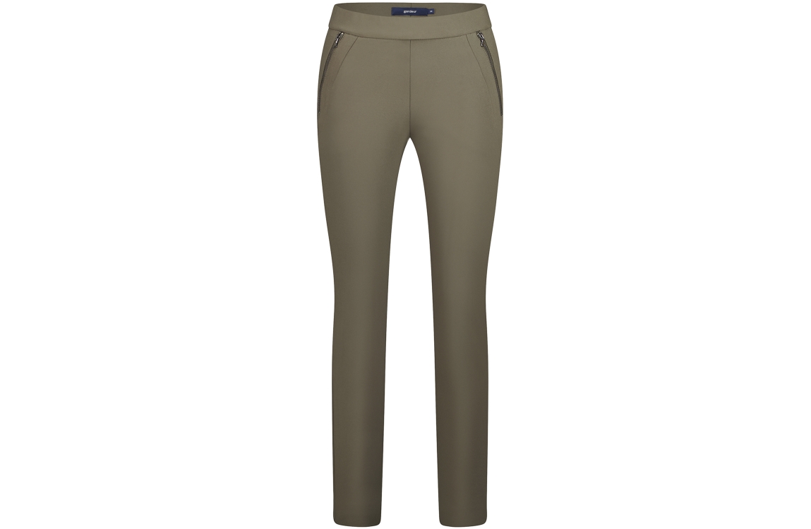 Gardeur broek ZENE28 600261. Dit recht vallende model sluit door middel van een elastische band. Deze bruine broek van Gardeur beschikt over twee ritszakken aan de voorzijde en twee neppe paspelzakken aan de achterkant. Dit item bevat veel stretch.