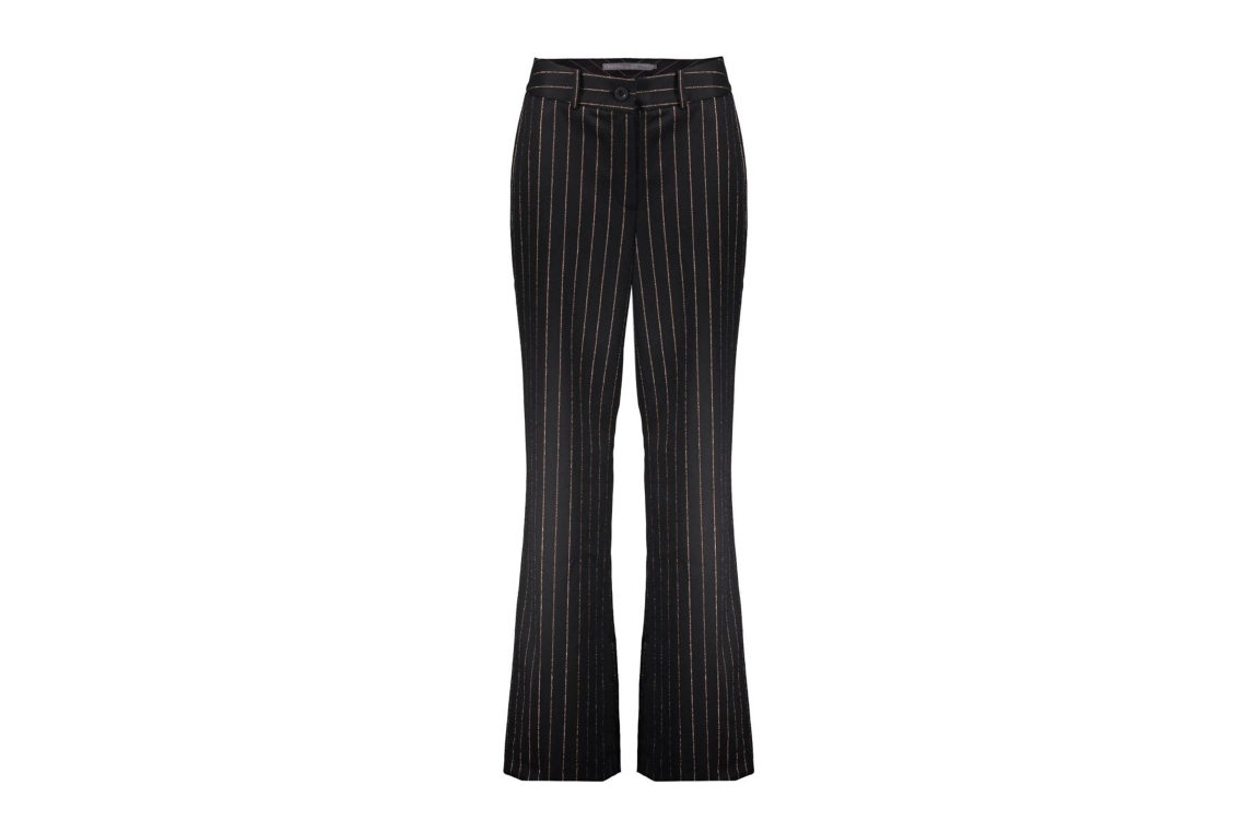 Geisha broek 51583-32. Dit rechtvallend fit model sluit door middel van knoop en ritsaansluiting en heeft ceintuurlussen. Deze zwarte Geisha broek is bewerkt met een all over bronze glitter motief. Dit model beschikt over twee paspelzakken aan de achterzijde.
