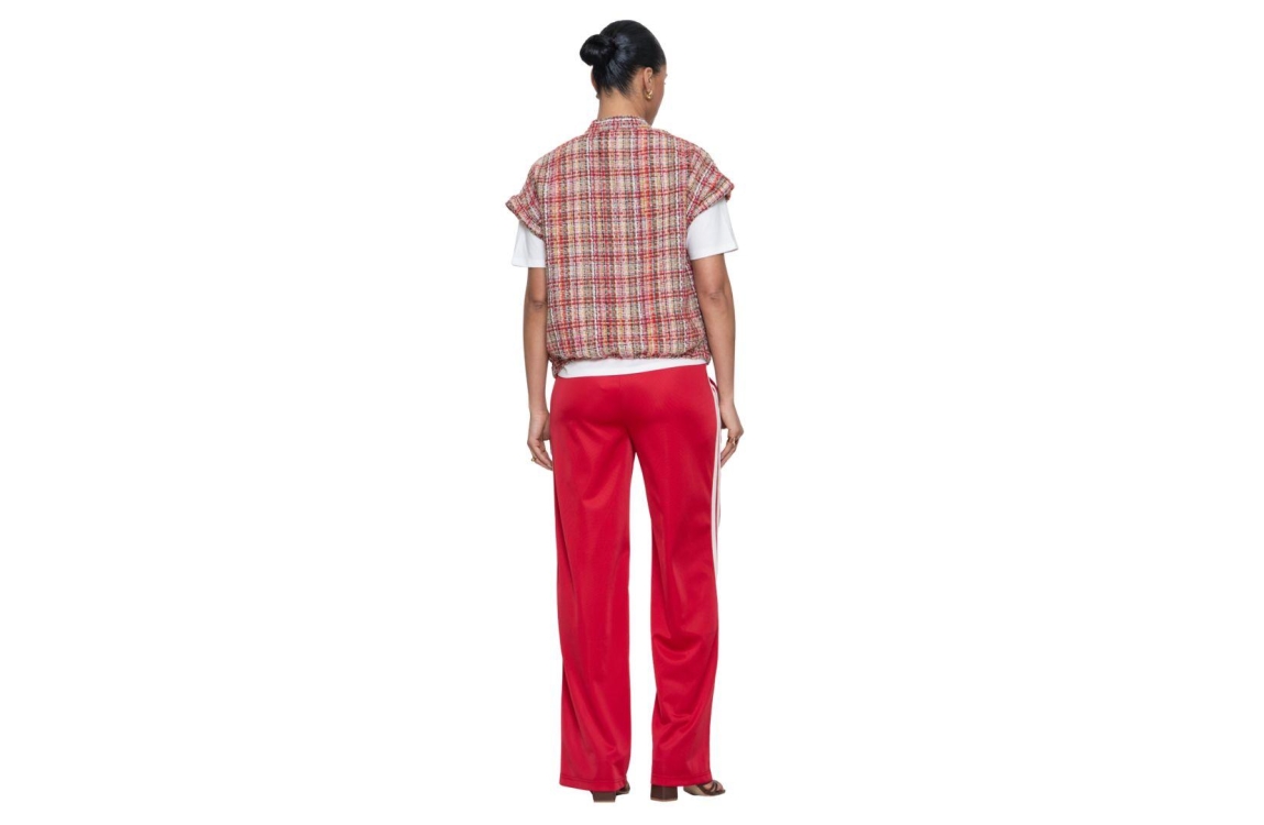 Geisha broek 61002-10 450. Dit staight fit model sluit door middel van een elastische boord met trekkoord. Deze rode broek van Geisha is langs het zijpand bewerkt met een sportieve streep en is voorzien van twee ritszakken.