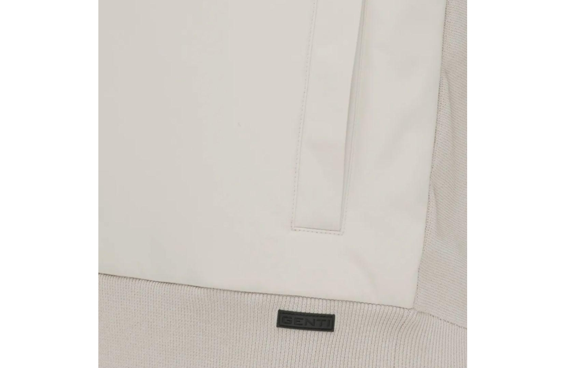 Genti jas K4160-1258 148. Dit regular fit model heeft een opstaande kraag en lange mouwen. Deze bruinkleurige jas van Genti sluit aan de voorzijde door middel van een rits en is voorzien van twee steekzakken. Het model is afgewerkt met ribgebreide mouwen en boorden.