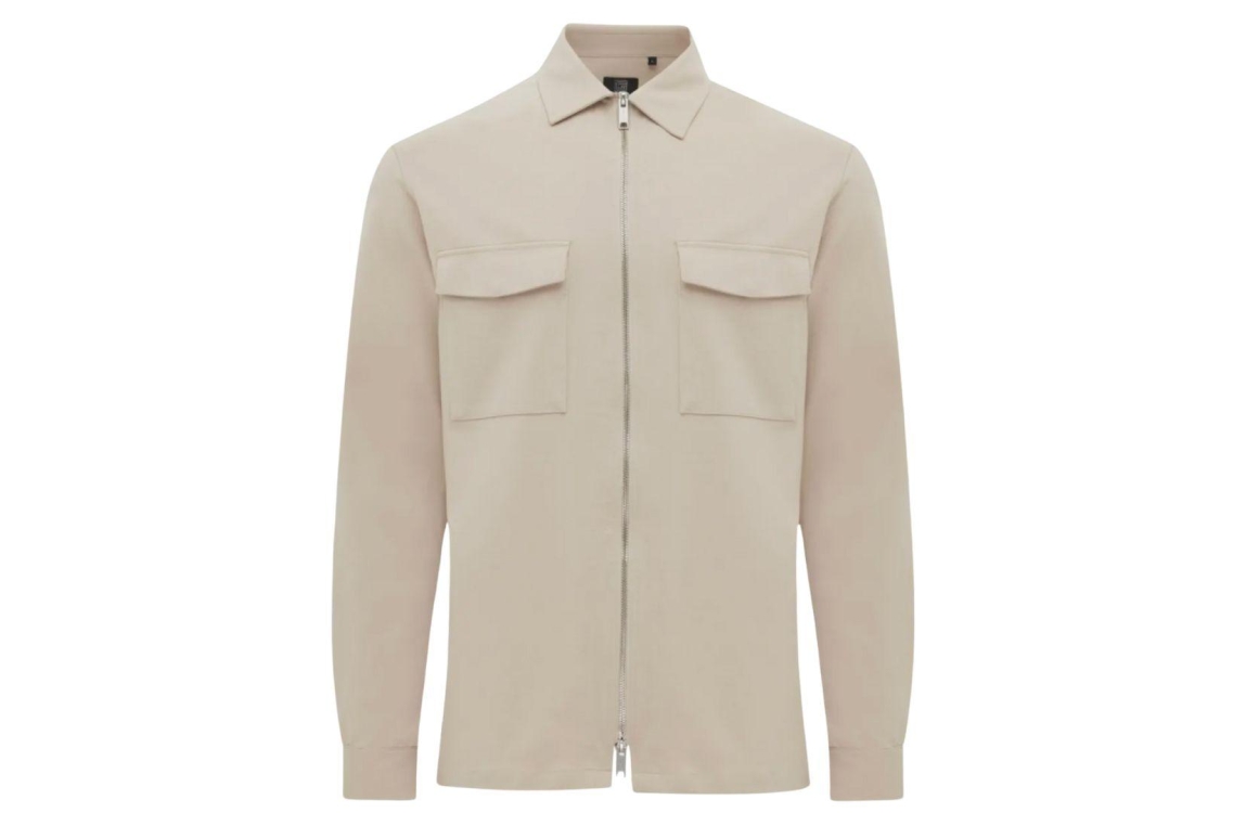 Genti vest/overshirt S4198-1967. Dit rechtvallende model heeft een kraag en lange mouwen. Deze licht bruine/beige vest van Genti sluit aan de voorzijde door middel van een ritssluiting en is voorzien van twee borstzakken. Het model is uitgevoerd in lichte stretchkwaliteit.