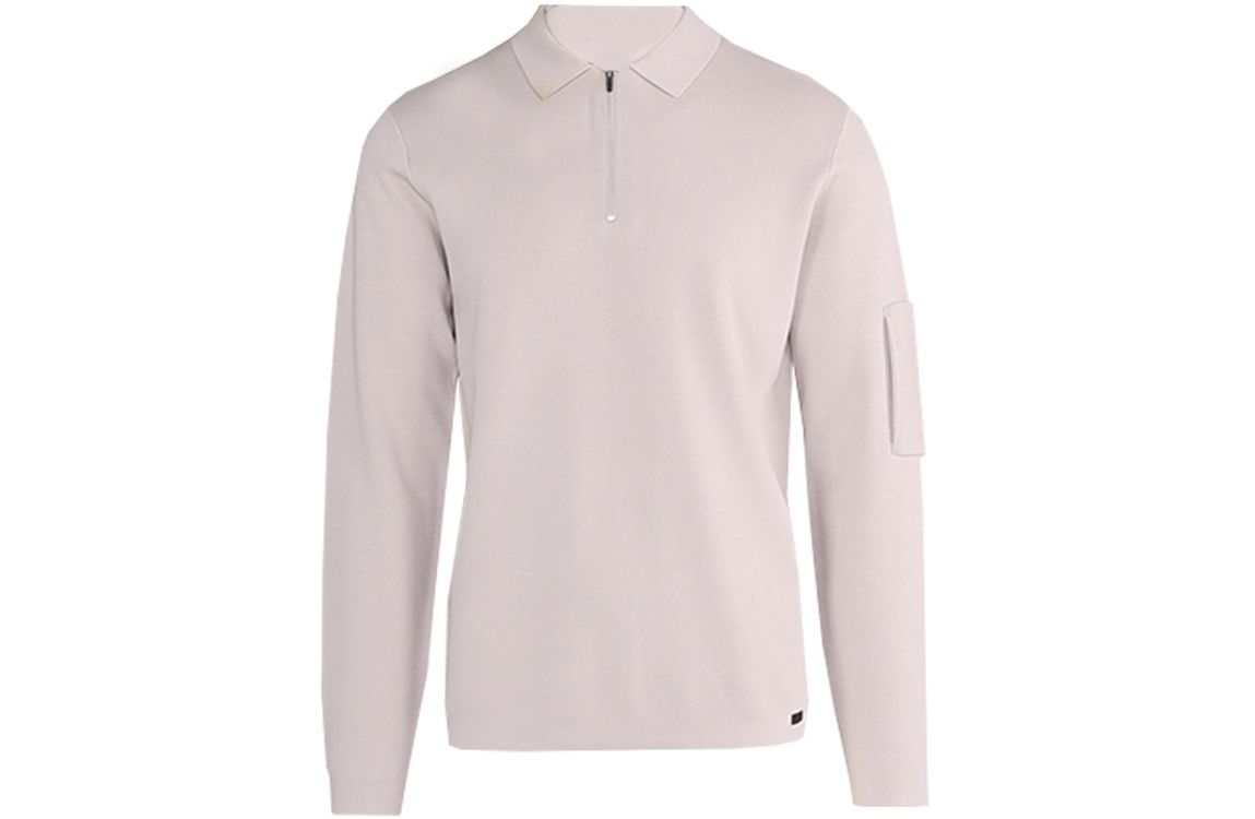 Genti polo K4117-1258. Dit rechtvallend model is voorzien van een kraag en heeft lange mouwen afgewerkt met een ritszak op de linkermouw. Deze beige polo van Genti sluit door middel van een rits aan de bovenzijde.