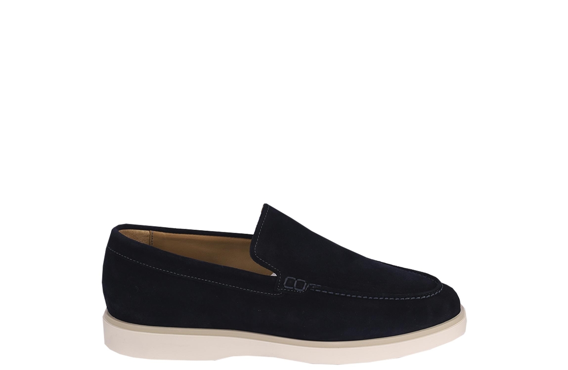 Giorgio light Boy 56402 188. Deze donkerblauwe instappers van Giorgio hebben een rubberen zool en een lederen voering. Het model is uitgevoerd in suédestof en is handgemaakt in Italië.