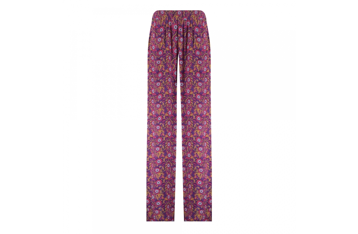 Harper and Yve broek Alexis AW24J102. Dit straight fit model sluit door middel van een elastische tailleband. Deze paarse broek van Harper and Yve is all-over bewerkt met een bloemenprint in verschillende kleuren en is aan de voorzijde gedetailleerd met een klein goudkleurig hartje met de letters 'H&Y'. Dit model beschikt over twee steekzakken aan de voorzijde en twee paspelzakken aan de achterzijde.