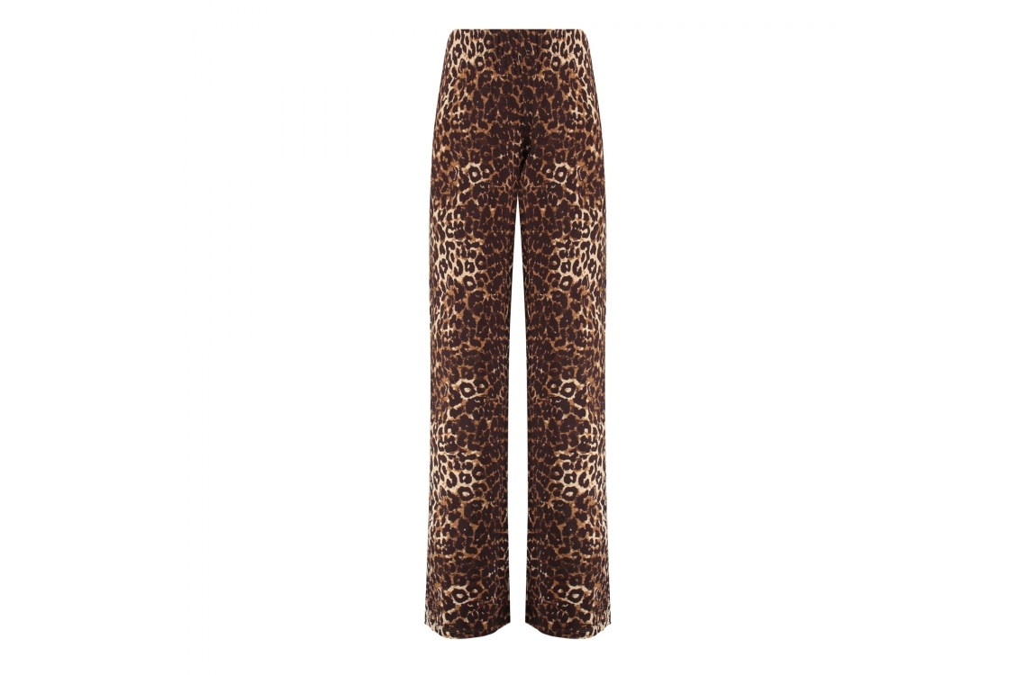 Harper & Yve Jane-pa broek. Dit rechtvallende model sluit aan de bovenzijde door middel van een elastische boord. Deze bruine broek van Harper & Yve is bewerkt met een luipaard patroon en gemaakt van stretch materiaal.