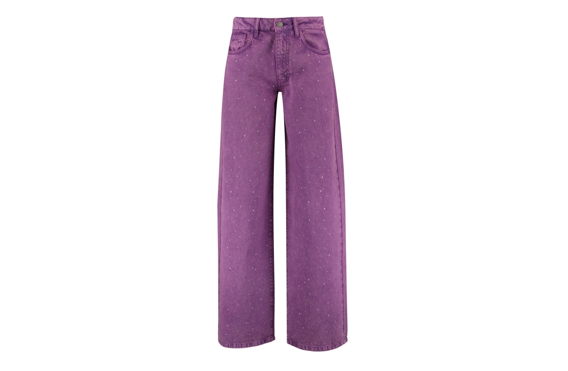 Harper and Yve mayra jeans ss25d104. Dit wide-leg model sluit door middel van een knoop en rits. Deze paarse jeans van Harper and Yve is afgewerkt met strass-steentjes, riemlusjes en verschillende zakken.