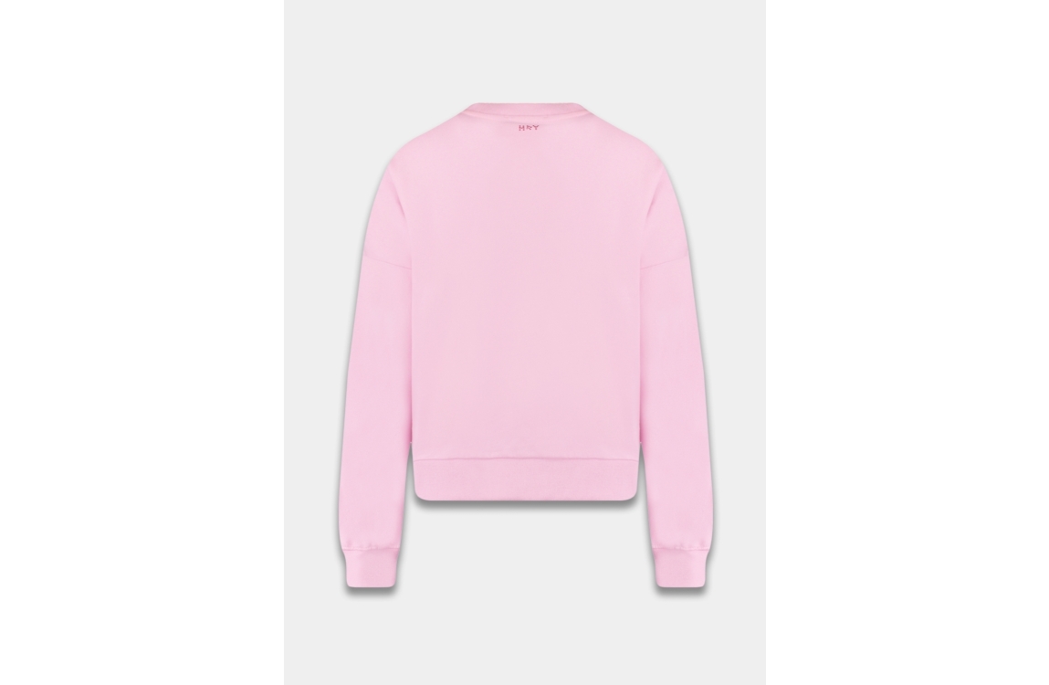 Harper and Yve RHINE-SW 621 cotton candy. Dit soepelvallende model is voorzien van een ronde hals en lange mouwen. Deze roze sweater van Harper and Yve is aan de voorzijde bewerkt met roze strass-steentjes.
