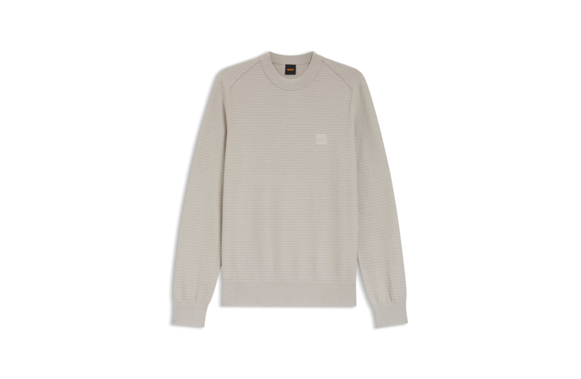 Hugo Boss trui anion_s 10265864 01 070. Dit regular fit model is voorzien van een ronde hals en heeft lange mouwen. Deze grijze sweater van Hugo Boss is uitgevoerd in een fijn breisel voorzien van ribgebreide boorden. Dit model is aan de binnenzijde afgewerkt met een beige breisel.