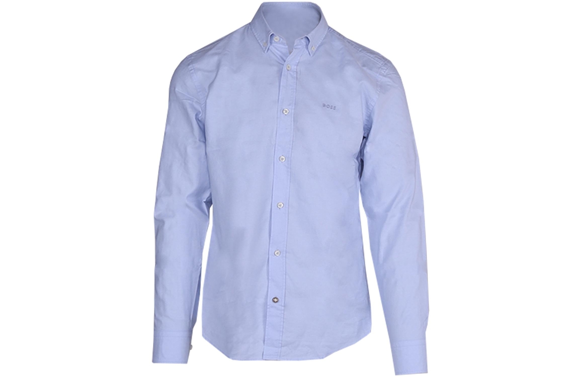 Hugo Boss shirt 50520259. Dit casual fit model is voorzien van een kraag en heeft lange mouwen. Dit blauwe overhemd van Hugo Boss sluit door middel van knopen en is op de borst afgewerkt met een geborduurd merkembleem.