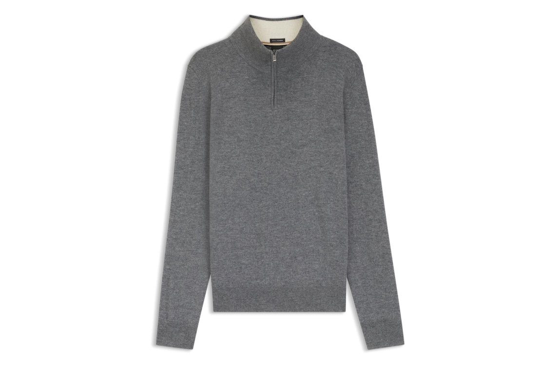Hugo Boss-Black H-Hemarlo 10274962 01 030 Medium Grey. Dit rechtvallende model is voorzien van een turtle neck met rits en heeft lange mouwen. Deze grijze pullover van Hugo Boss is afgewerkt met boorden.
