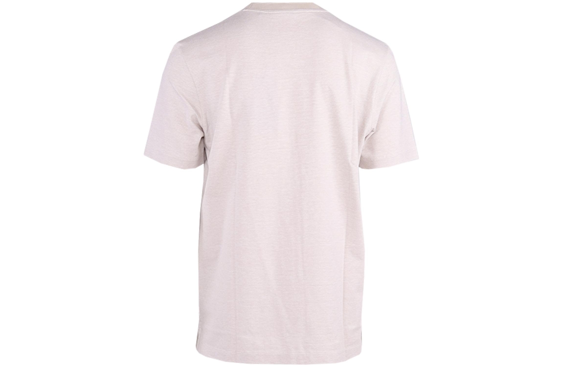 Hugo Boss T-shirt 50555163 286. Dit rechtvallende model heeft een ronde halslijn en korte mouwen. Deze beige T-shirt van Hugo Boss is uitgevoerd met een structuur en heeft afgewerkte boorden.