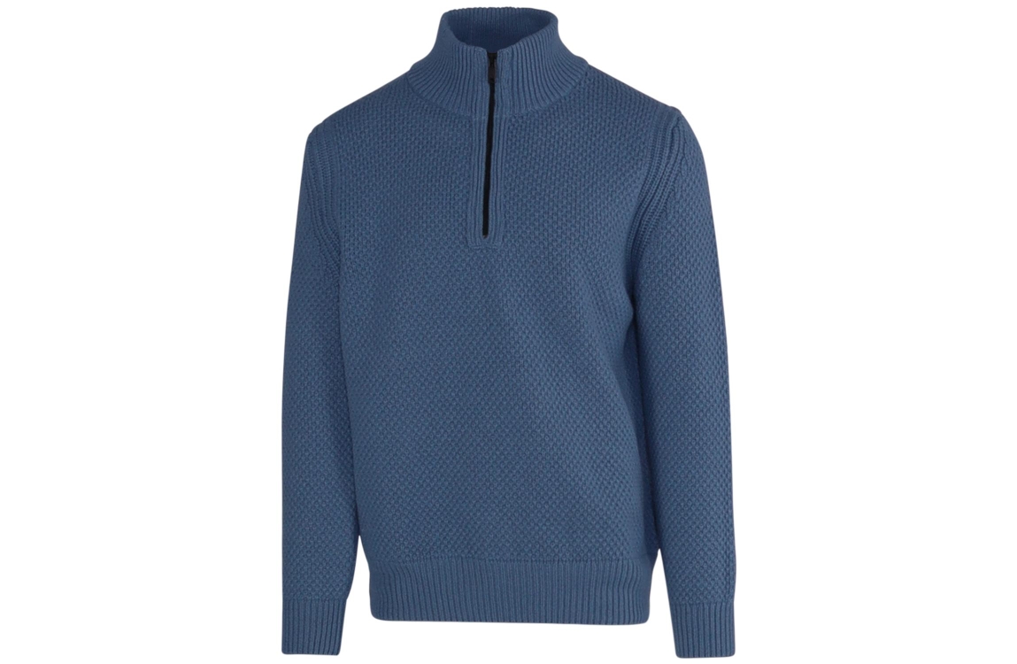 Hugo Boss zip. Dit regular fit model is voorzien van lange mouwen en is doormiddel van een rits te sluiten. Deze licht blauwe zip van Hugo Boss is afgewerkt met een all over patroon