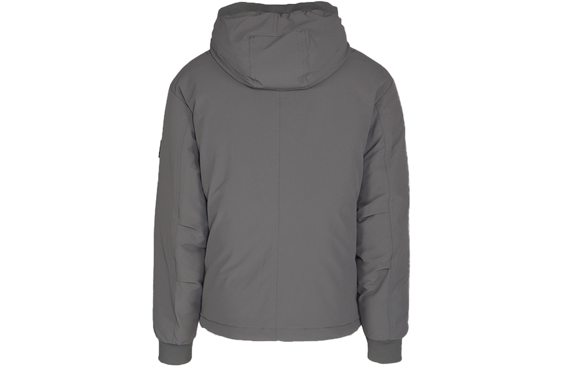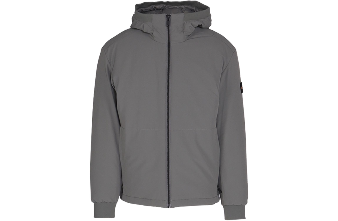 Hugo Boss jas ospace. Dit rechtvallende model jas heeft een capuchon en lange mouwen. Deze grijze jas sluit door middel van een rits en heeft 2 steekzakken aan de voorzijde en een binnenzak.