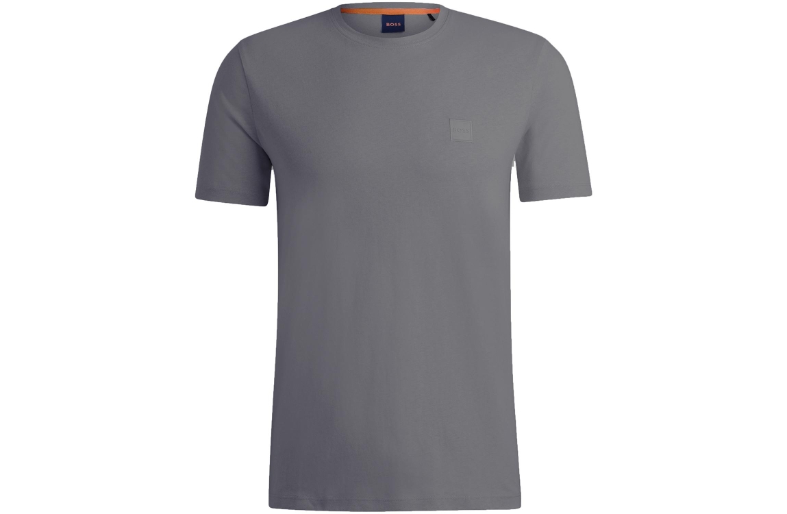 Hugo Boss T-shirt. Dit regular fit model is voorzien van een ronde hals en heeft korte mouwen. Dit donkergrijze T-shirt van Hugo Boss is afgewerkt met een merkembleem op de linkerborst.