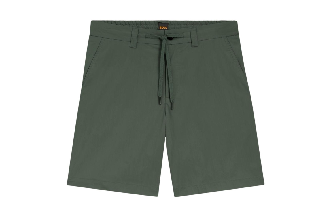 Hugo Boss short 50536885 076. Dit tapered fit model sluit door middel van een knoop- en ritssluiting met trekkoord en is voorzien van ceintuurlussen. Deze donkergroene short van Hugo Boss is uitgevoerd in een 5-pocketmodel en is gemaakt van katoen en elastaan.