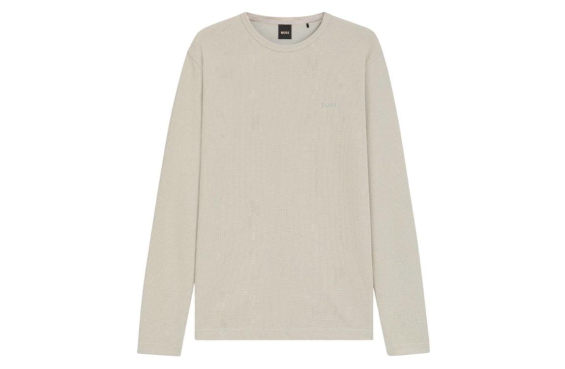 Hugo Boss-Orange Tempesto 10262290 01 070 Open grey. Dit rechtvallende model heeft een ronde halslijn en lange mouwen. Deze grijze pullover van Hugo Boss is all-over bewerkt met een structuur en is afgewerkt met ribgebreide boorden. Het model is op de linkerborst gedetailleerd met het merkembleem.
