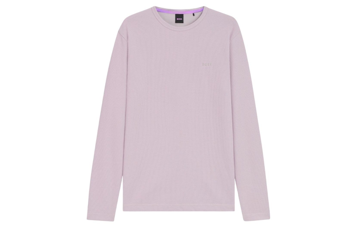 Hugo Boss pullover 50520725 539. Dit rechtvallende model heeft een ronde halslijn en lange mouwen. Deze paarse pullover van Hugo Boss is all-over bewerkt met een structuur en is afgewerkt met ribgebreide boorden. Het model is op de linkerborst gedetailleerd met het merkembleem.