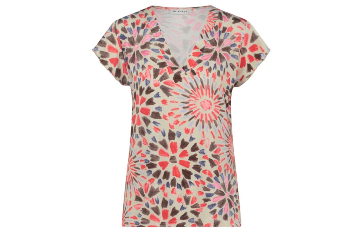 In Shape shirt 2501016. Dit rechtvallend model is voorzien van een v-hals en heeft korte mouwen. Deze multi colour shirt van In Shape is bewerkt met een print.
