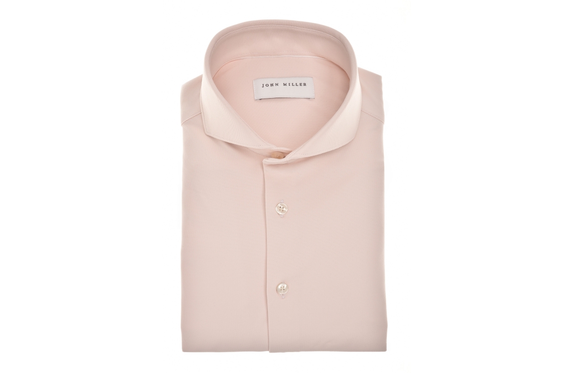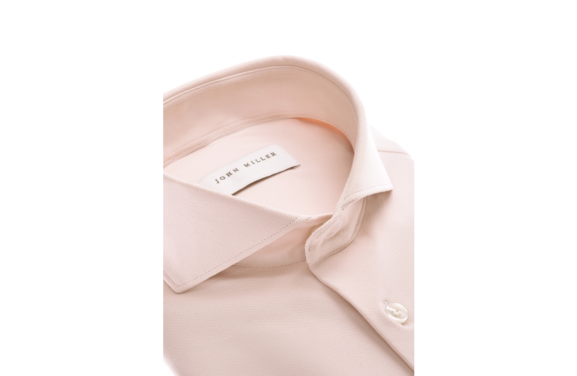 John Miller overhemd 5142675. Dit slim fit model is voorzien van een cutaway kraag en heeft lange mouwen afgewerkt met een split en knopen. Dit licht roze overhemd van John Miller sluit aan de voorzijde door middel van knopen.