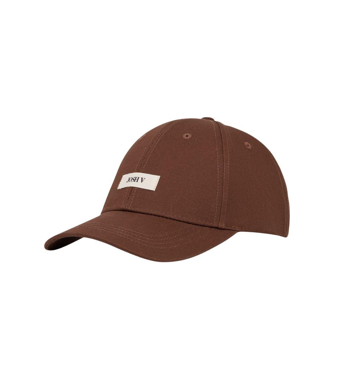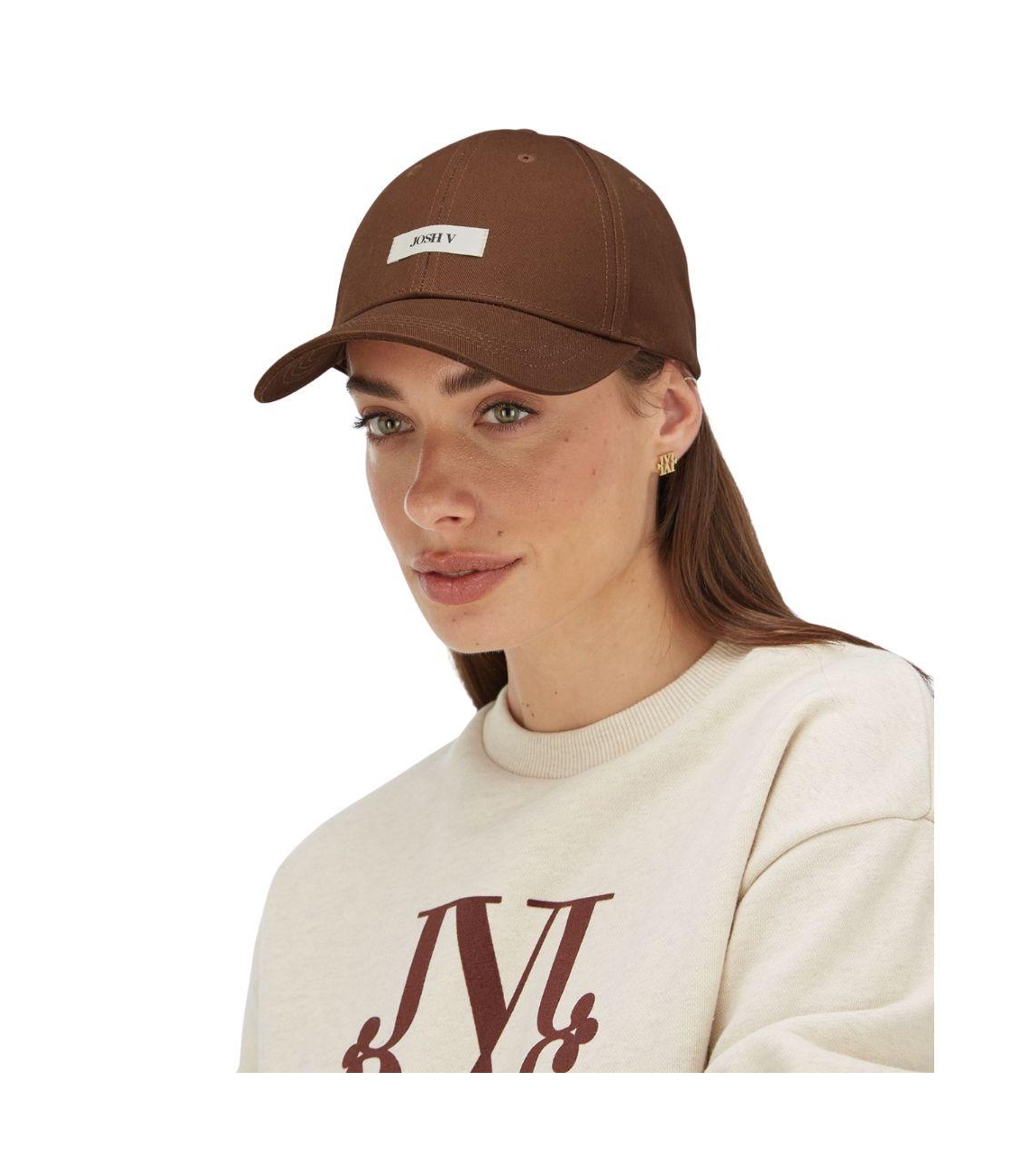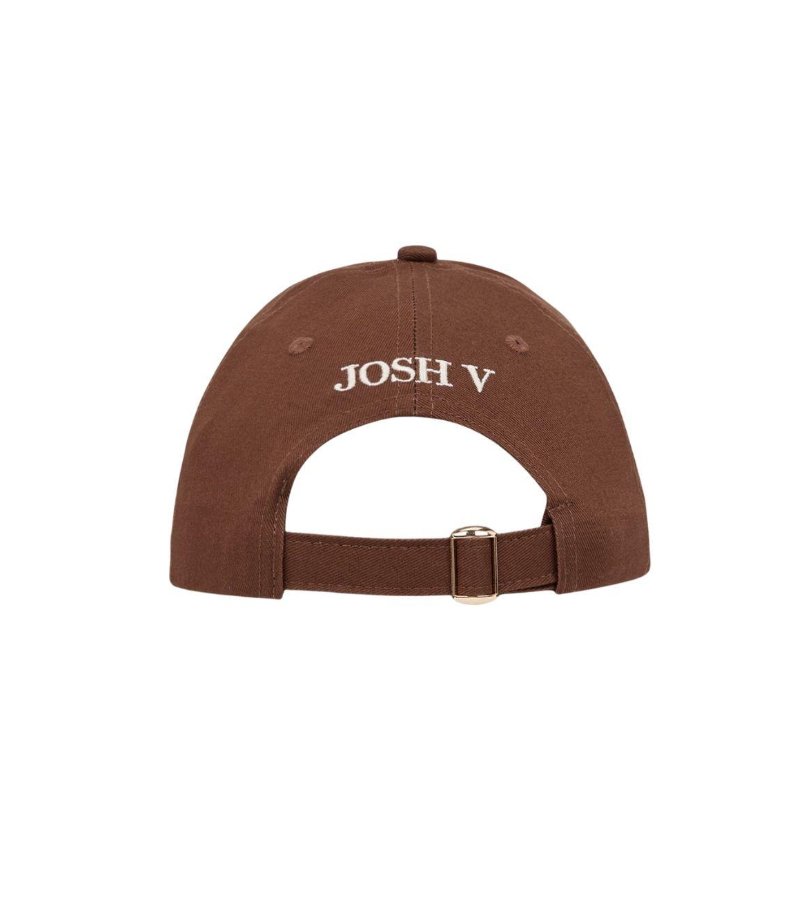 Josh V pet JV-2508-1811. Deze donkerbruine cap van Josh V heeft een verstelbare sluiting en is bewerkt met JOSH V embleem aan de voorzijde.