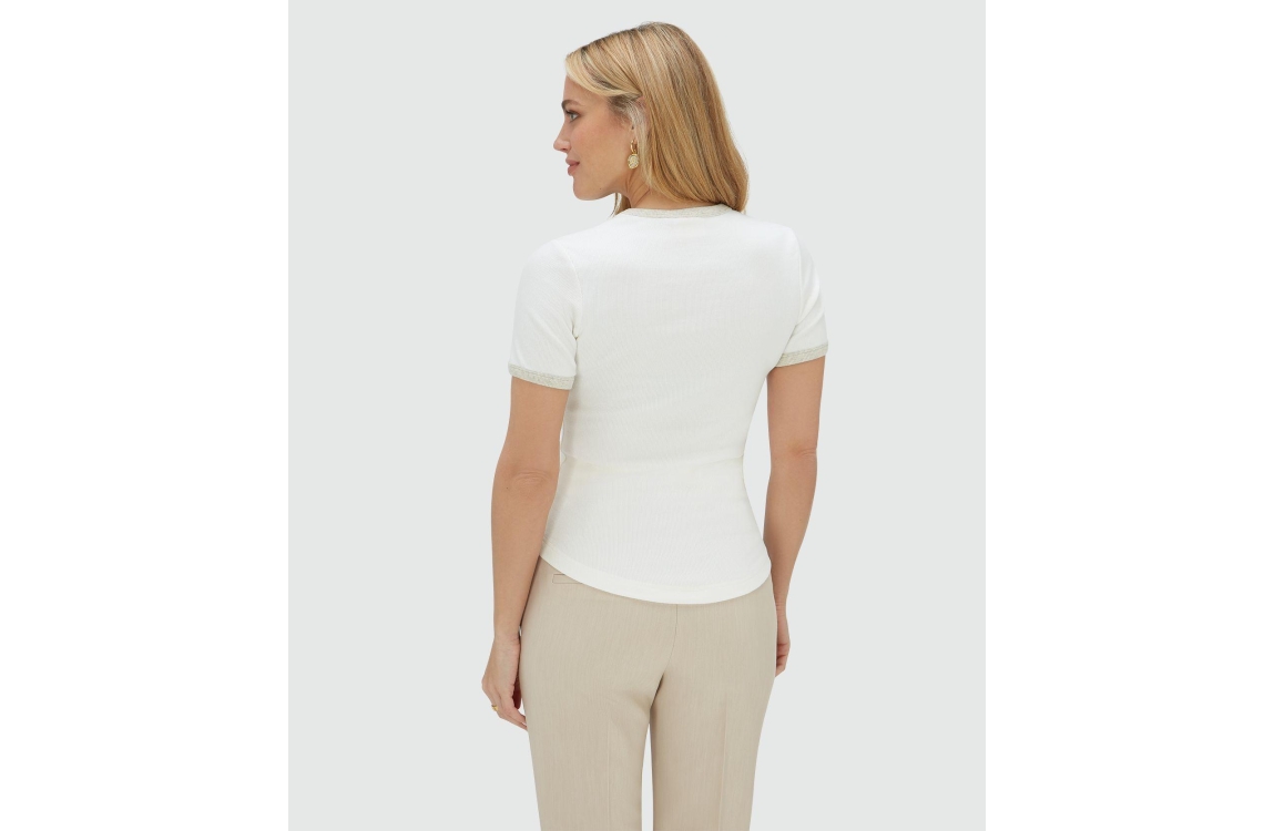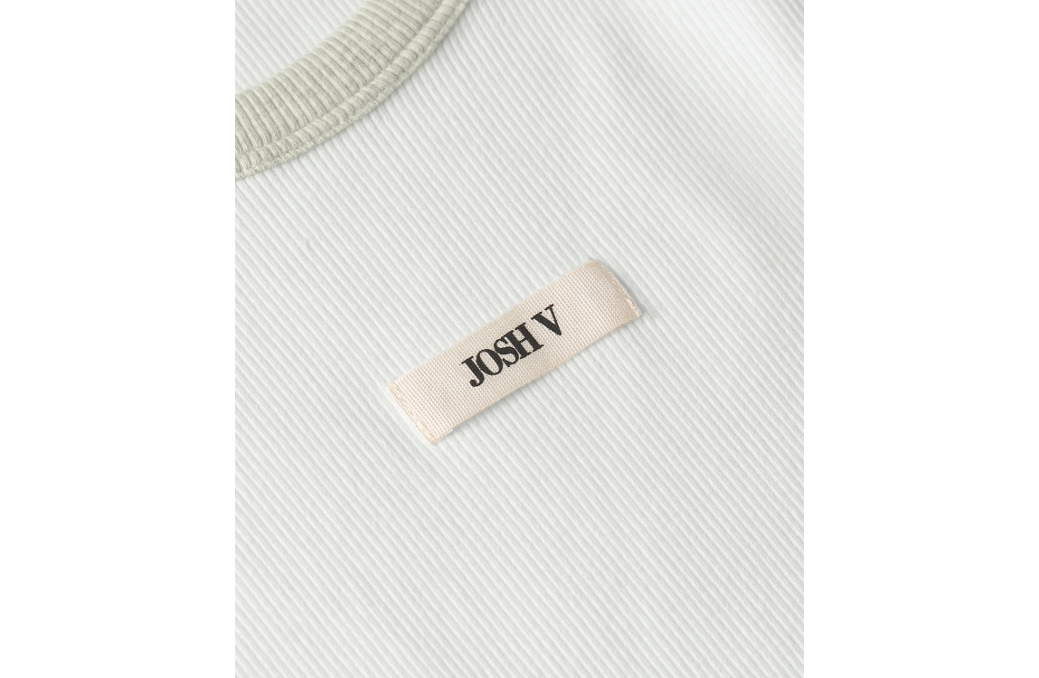 Josh V CODY slim fit logo T-shirt 033 off white. Dit aangesloten model is voorzien van een ronde hals en heeft korte mouwen. Dit witte shirt van Josh V is afgewerkt met een contrasterende bies en een subtiel JOSH V logo embleem op de voorzijde.
