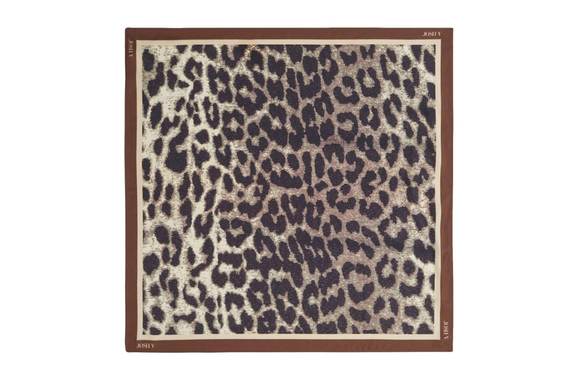 Josh V sjaal Cyril JV-2601-1805. Dit vierkante bruine model is bewerkt met panterprint en het logo.