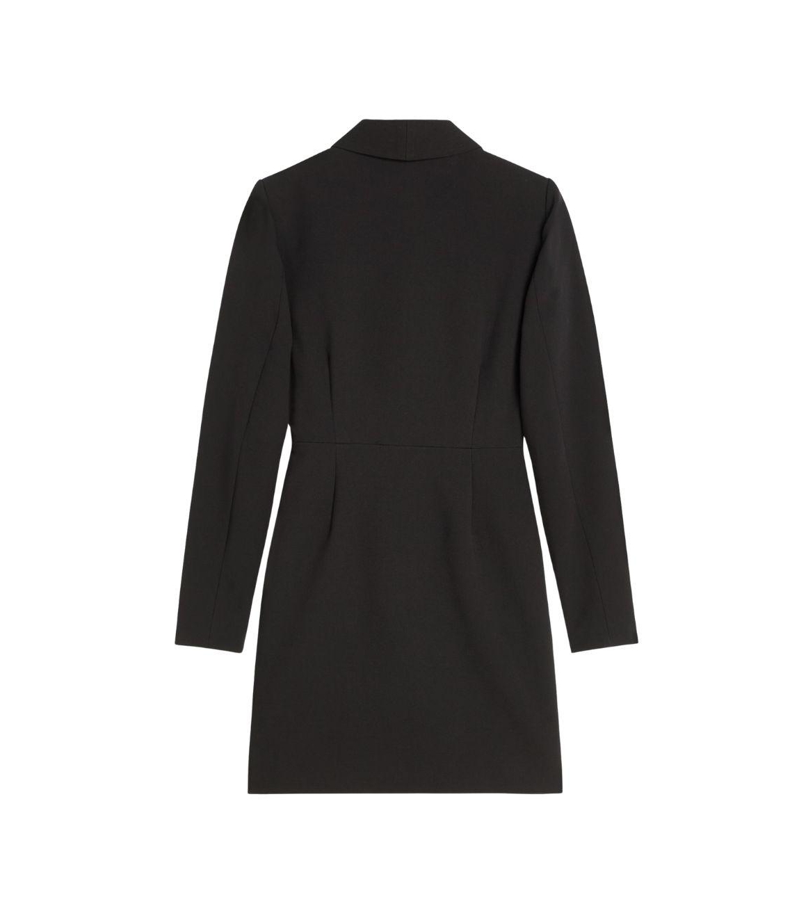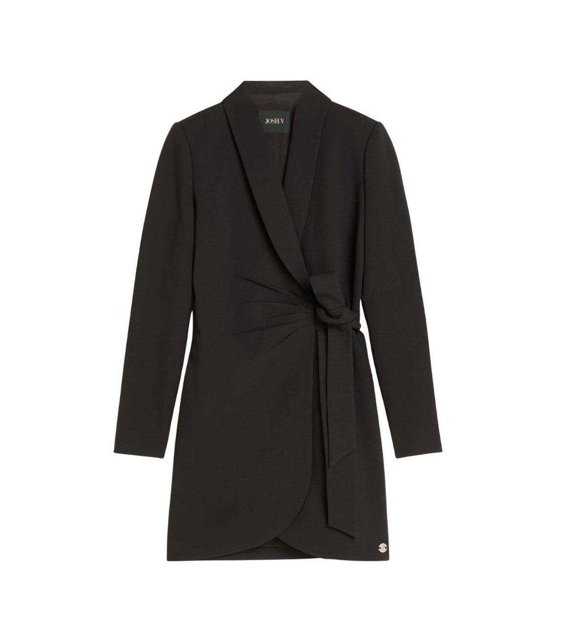 Josh V BONITA jurk JV-5000-0405. Dit rechtvallend model is voorzien van een v-hals en heeft lange mouwen met schoudervulling. Deze zwarte overslagjurk van Josh V sluit door middel van een strik.
