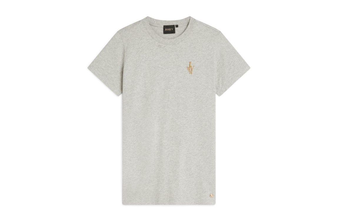 Josh V T-shirt Zoe. Dit rechtvallend model is voorzien van een ronde hals en heeft korte mouwen. Dit grijze T-shirt van Josh V is bewerkt met een goudkleurige geborduurd merkopdruk aan de linker voorzijde.
