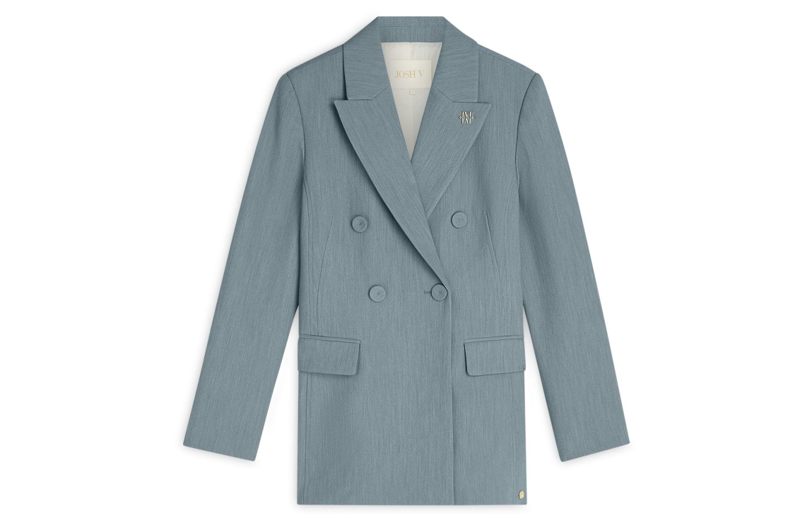 Josh V KASSIDY fitted blazer 625 sky blue melange. Dit getailleerde model heeft een reverskraag en lange mouwen. Deze blauwe blazer sluit aan de voorzijde door middel van knopen en beschikt over twee klepzakken aan de voorzijde. Dit model is gedetailleerd met een goudkleurig JOSH V embleem op de kraag.
