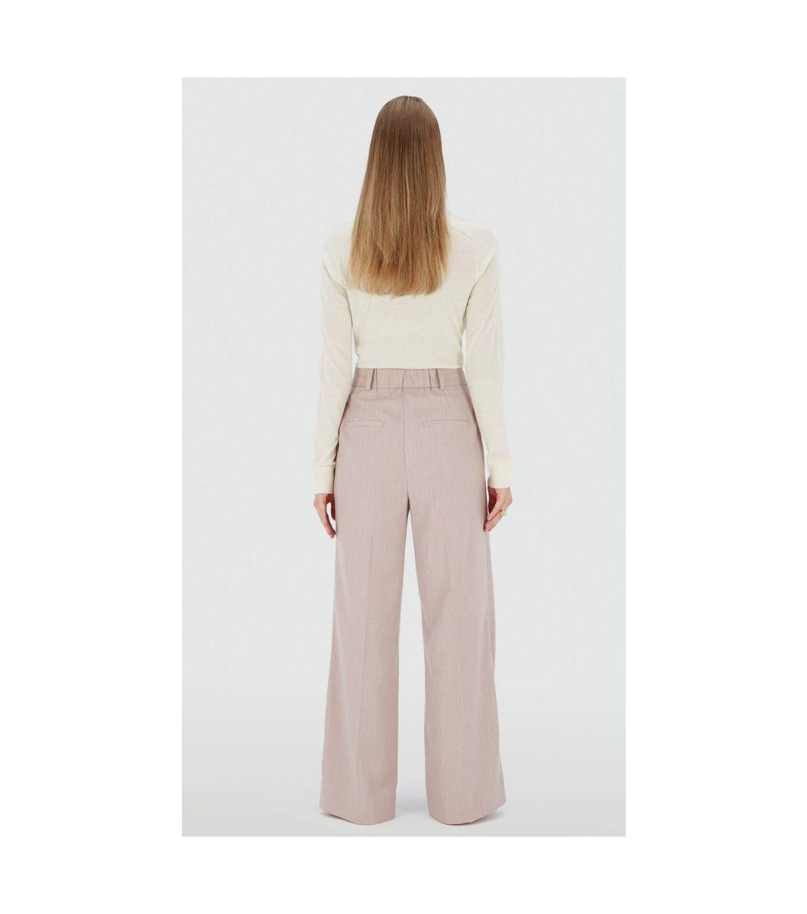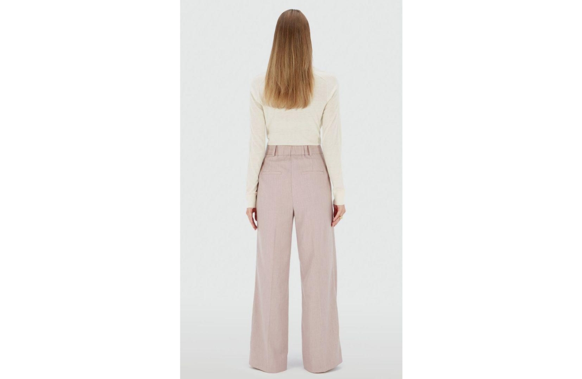 Josh V pantalon Kate JV-2510-0603. Dit wide leg model sluit door middel van twee knopen en een rits afgewerkt met ceintuurlussen. Deze roze pantalon van Josh V beschikt over twee steekzakken en een paspelzak aan de voorzijde en twee paspelzakken aan de achterzijde. Dit model is gedetailleerd met plooidetails en elastiek in de achterzijde van de tailleband.