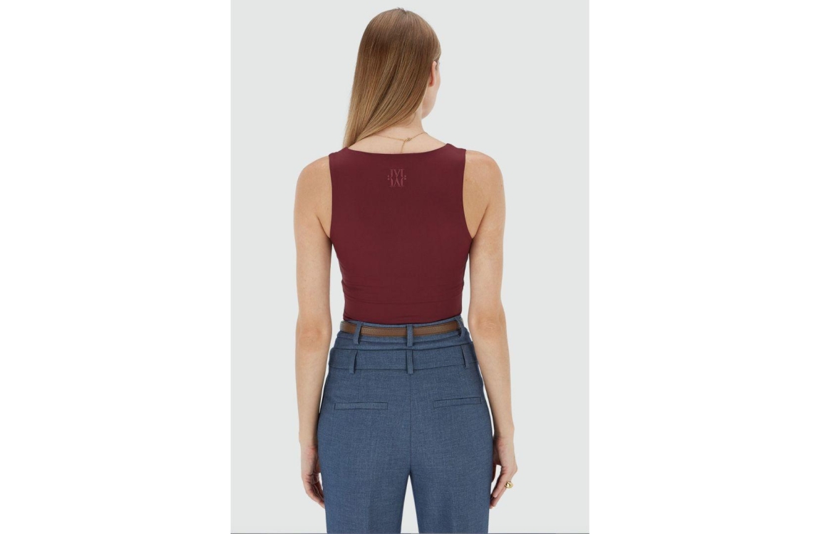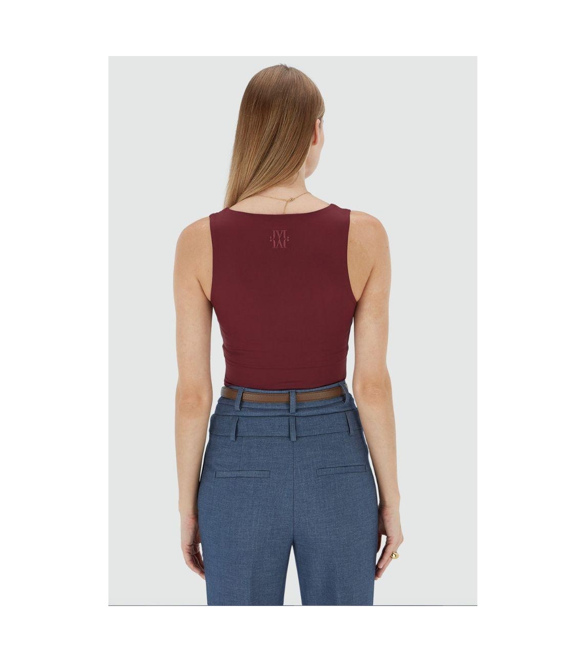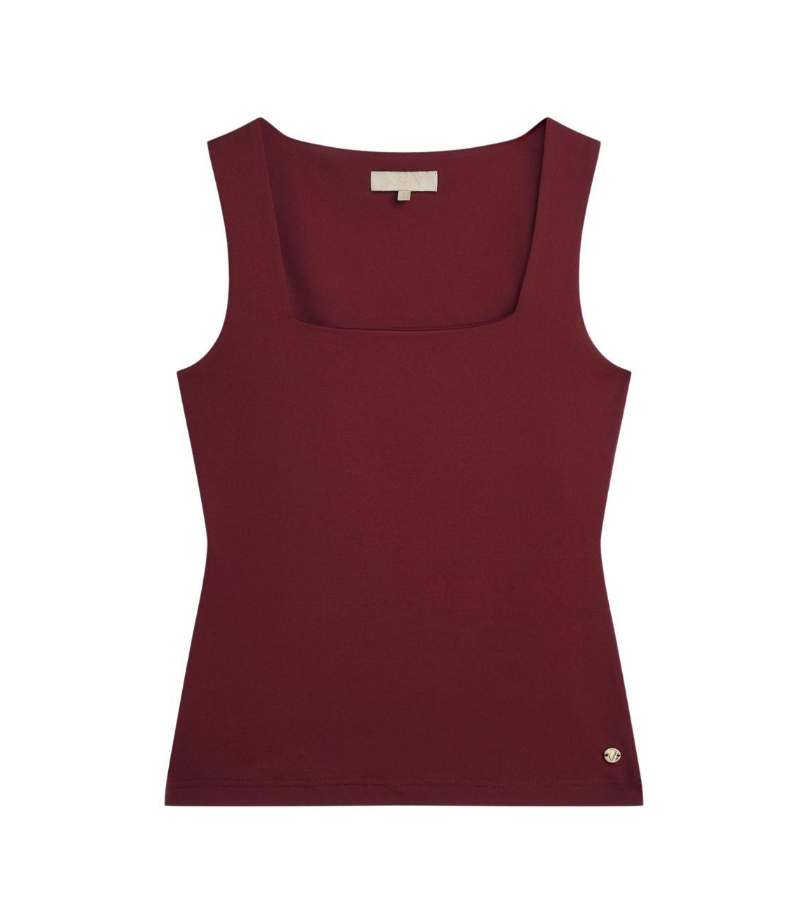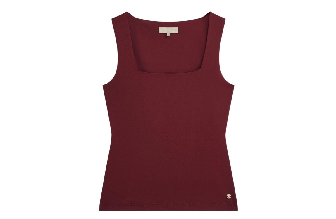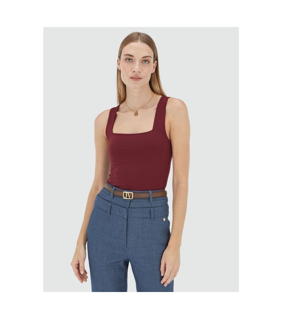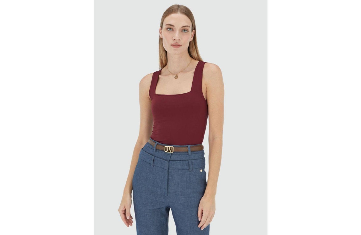 Josh V top Linde JV-2510-1102. Dit getailleerd model heeft een vierkante halslijn en is mouwloos. Deze rode top van Josh V is gemaakt van jerseykwaliteit met stretch en is aan de achterzijde afgewerkt met het geborduurde merkembleem.
