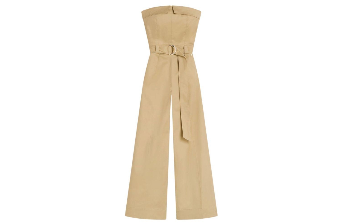 Josh V jumpsuit MYRA JV-2602-0701. Dit strappless model heeft een aangesloten bovenstuk en wijde broekspijpen. Deze camelkleurige jumpsuit van Josh V sluit aan de achterzijde door middel van een rits en is voorzien van een ceintuur. Het model beschikt over twee steekzakken aan de voorzijde en twee paspelzakken aan de achterzijde.