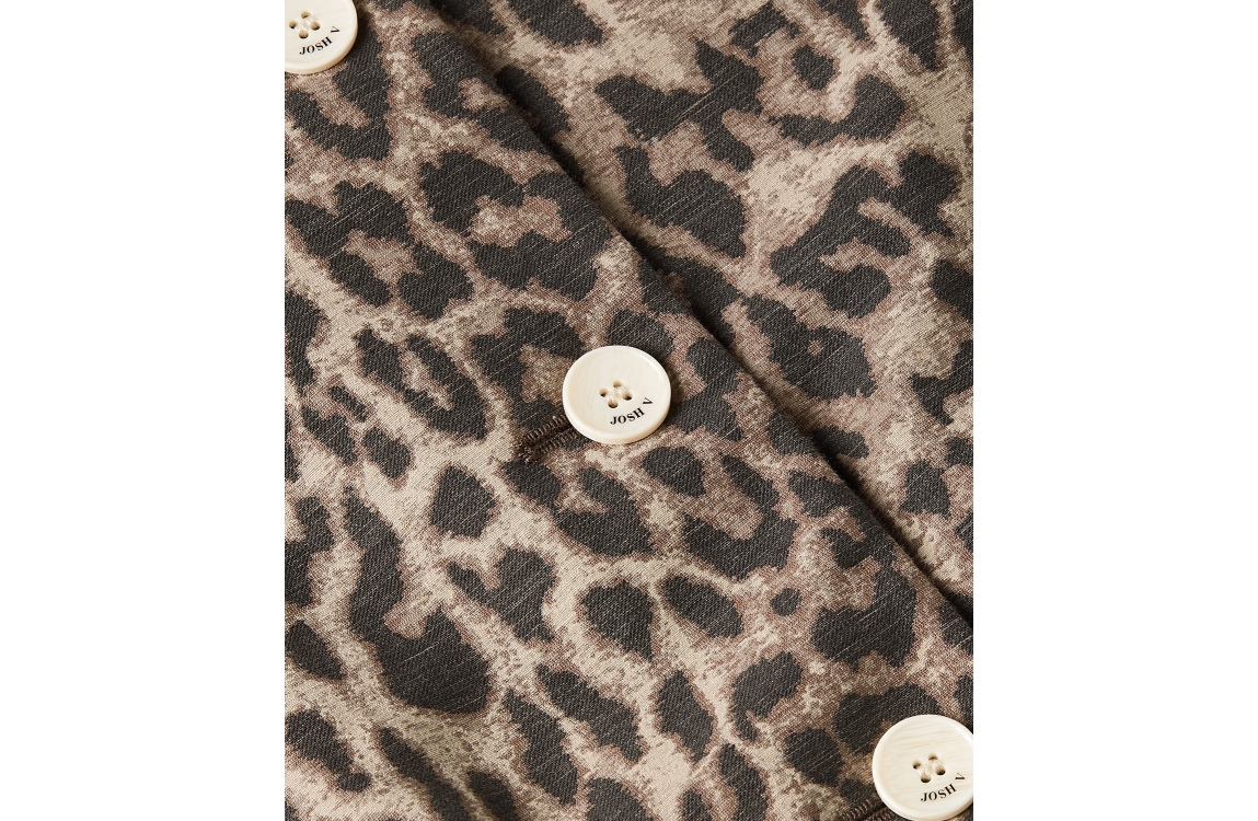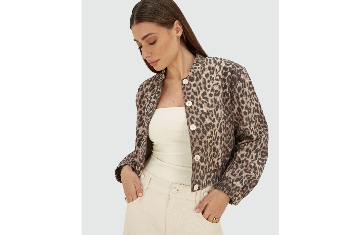 Josh V NADINE bomber jacket with leopard print 604 leopard brown. Dit oversized model heeft een ronde hals en lange mouwen. Deze leopard print bomber van Josh V sluit door middel van knopen en is afgewerkt met subtiele schoudervullingen. Dit model heeft twee steekzakken en is afgewerkt met elastische boorden.