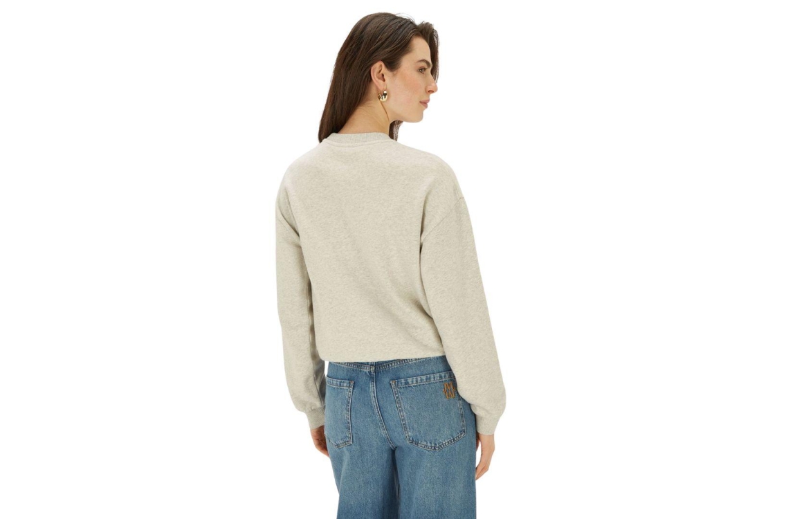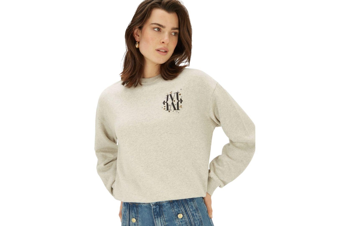 Josh V sweater Naomi JV-2601-0801. Dit rechtvallend model is voorzien van een ronde hals en heeft lange mouwen. Deze grijze sweater van Josh V is bewerkt met het logo op de borst afgewerkt met glitter steentjes.