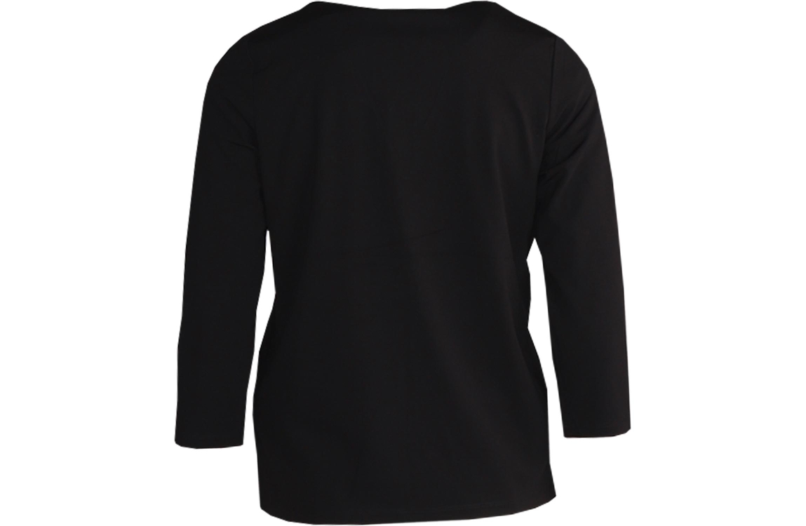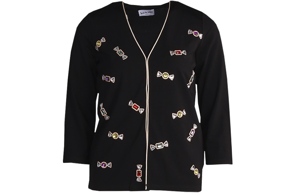 Leo & Ugo twin set tejt672. Dit rechtvallend model heeft een ronde hals en driekwart mouwen. Deze zwarte twin set van Leo & Ugo is vorzien van diamanten elementen op de voorkant.