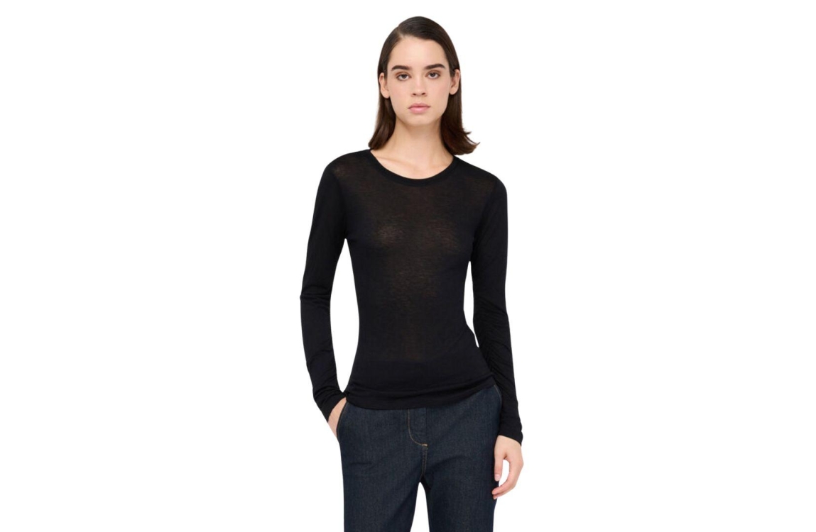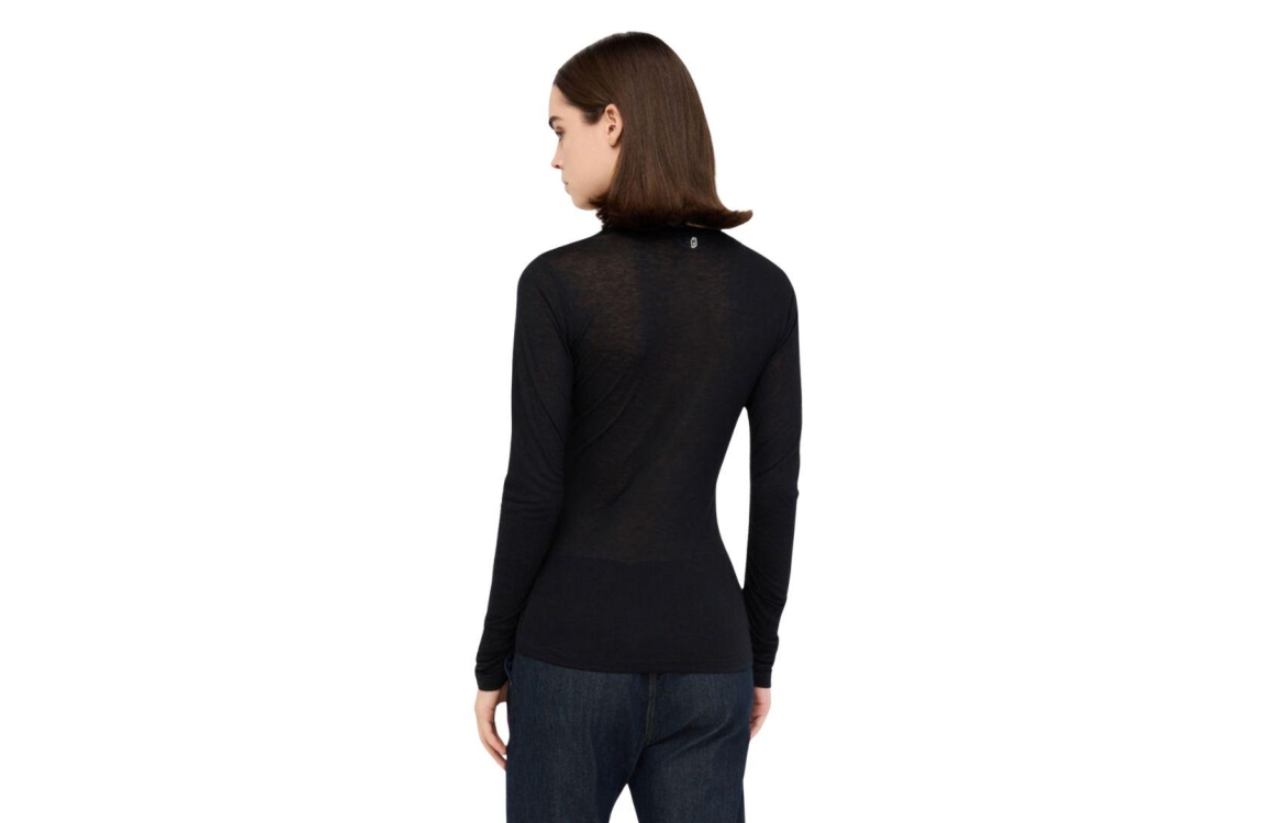 Liu Jo T-shirt MF5498J3825. Dit aangesloten zwarte model is voorzien van een ronde hals en heeft lange mouwen afgewerkt met gedrappeerde details.