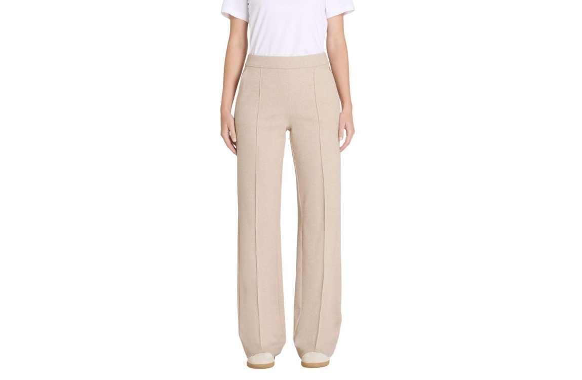 MAC broek Chiara Smart 0114302900. Dit wide leg model sluit door middel van een elastische boord en beschikt over twee steekzakken aan de voorzijde en twee paspelzakken aan de achterzijde. Deze beige broek van MAC beschikt over een verticale naad over de benen.
