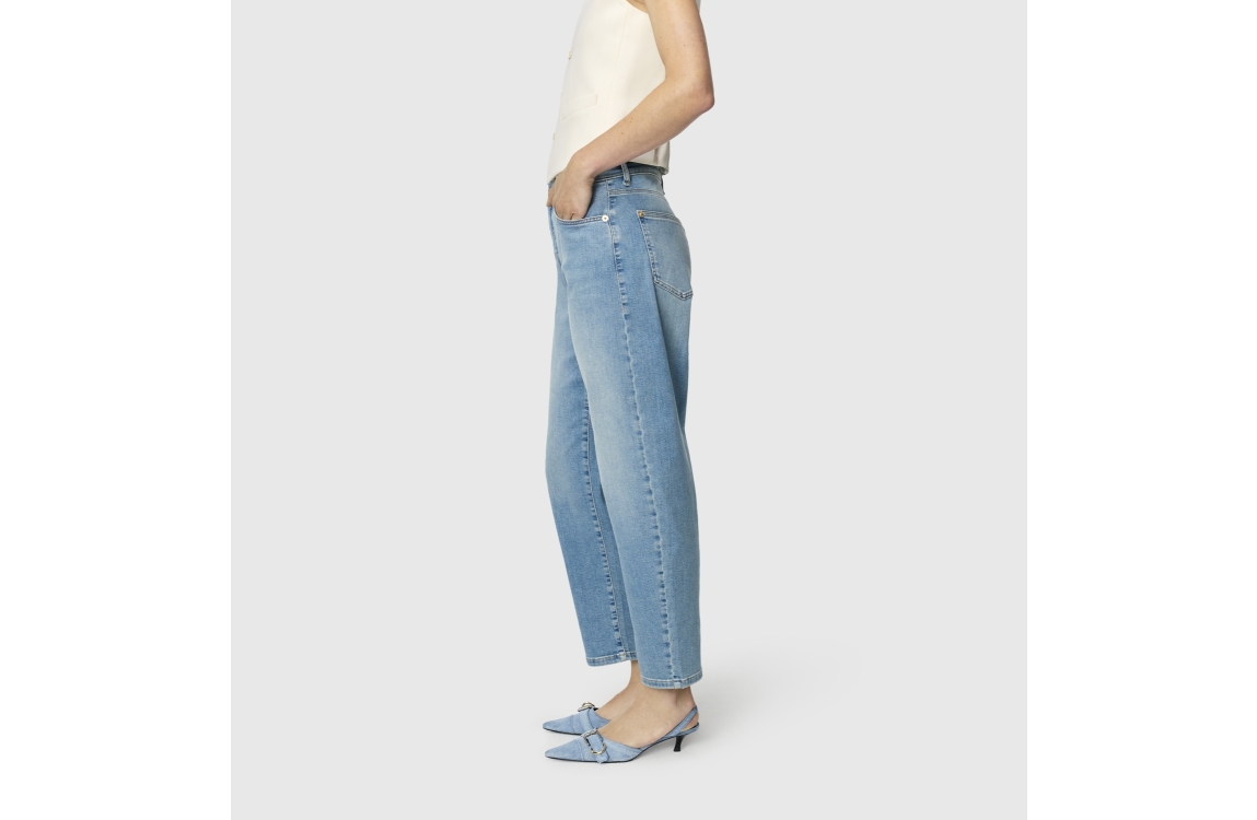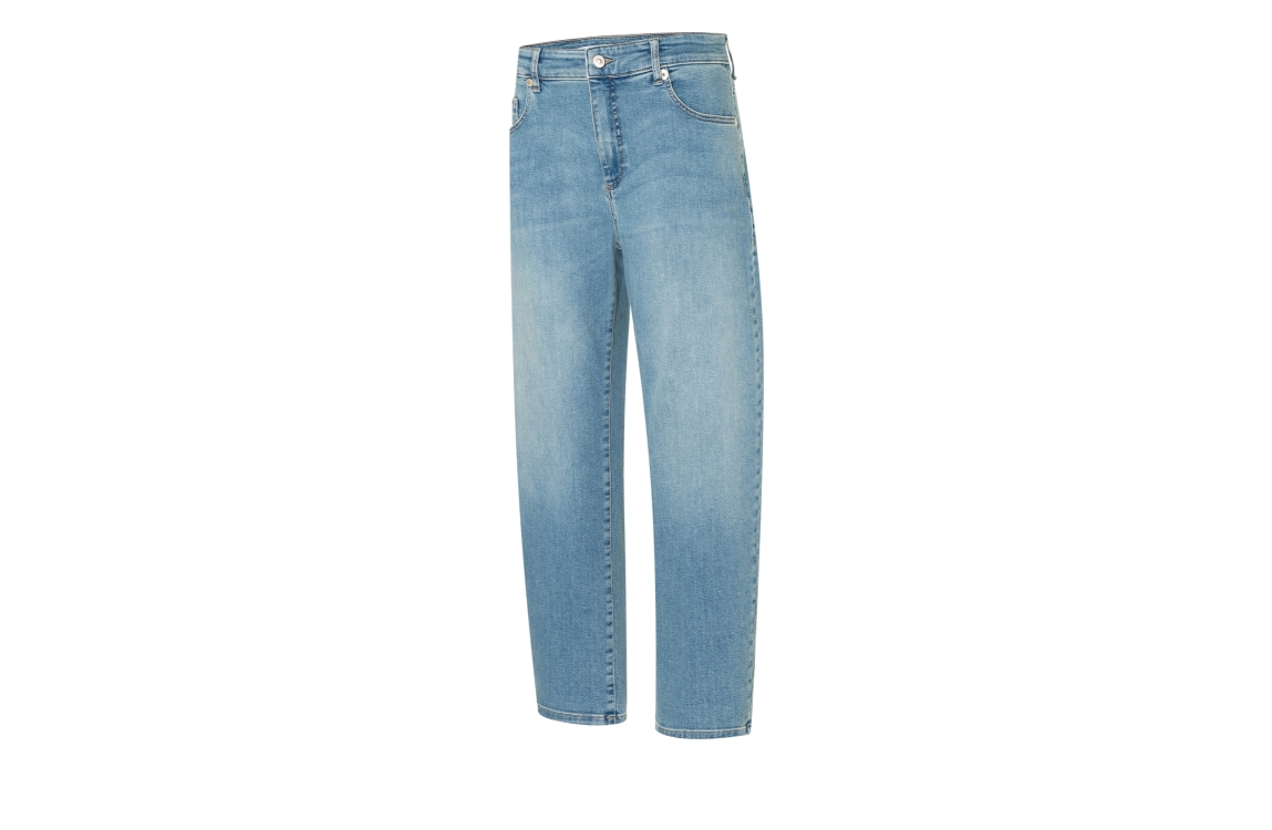 MAC DANNI D411 barrel jeans 0389L311090. Dit barrel fit model sluit door middel van een knoop en een rits. Deze blauwe denim jeans van Mac is voorzien van verschillende broekzakken en riemlusjes. Dit model bevat stretch.