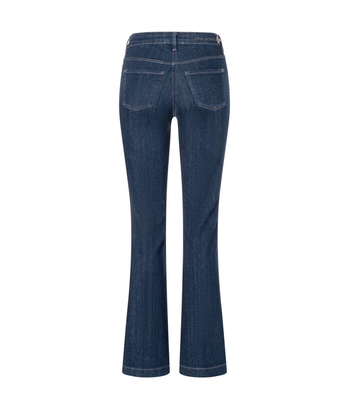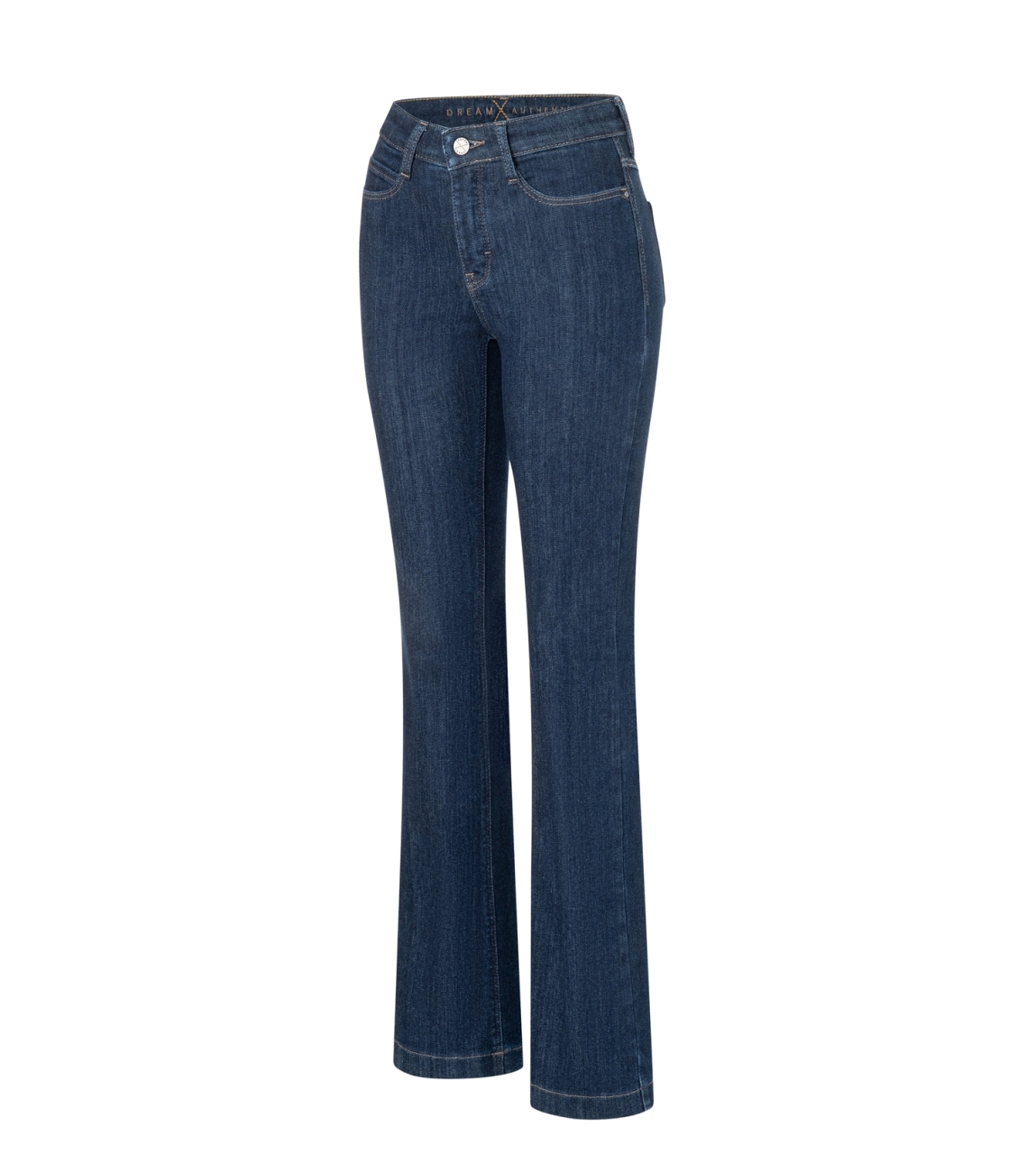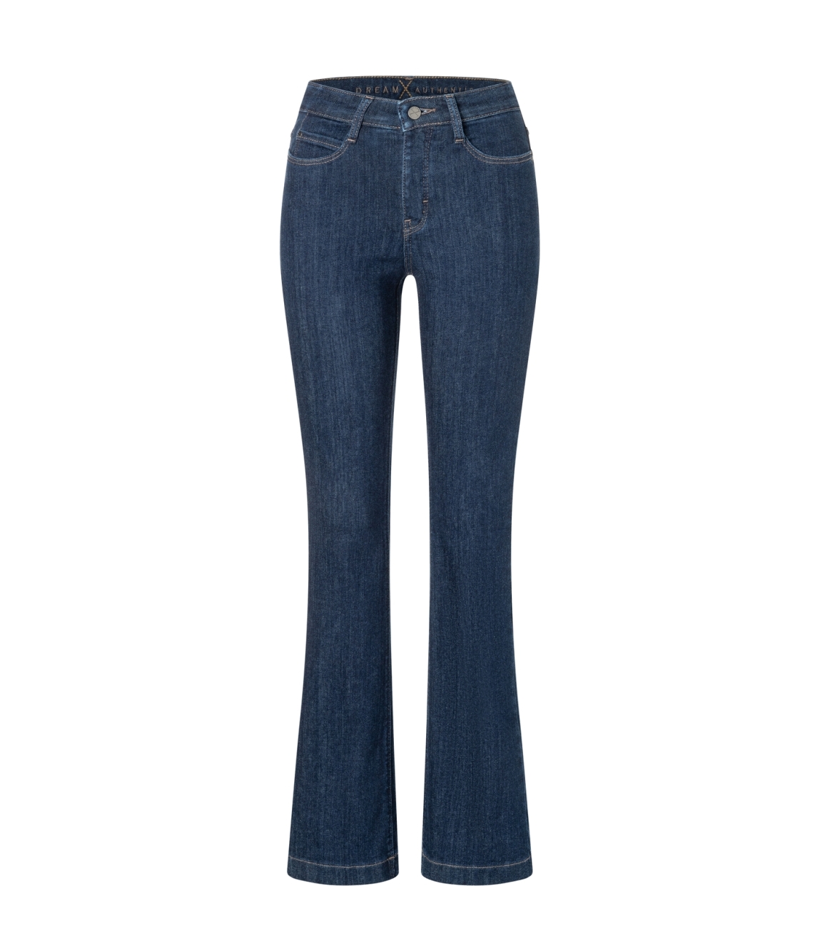 MAC DREAM BOOT D683 0358L542990. Dit flared model sluit door middel van een knoop en rits. Deze blauwe jeans van Mac is voorzien van verschillende zakken, riemlusjes en bevat stretch.