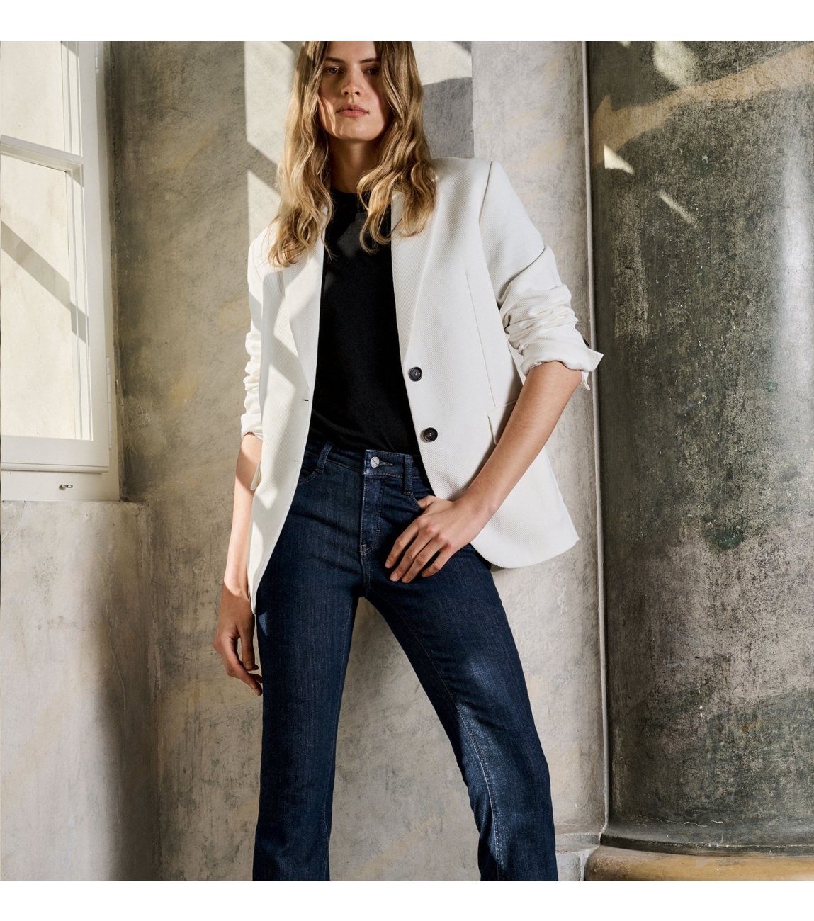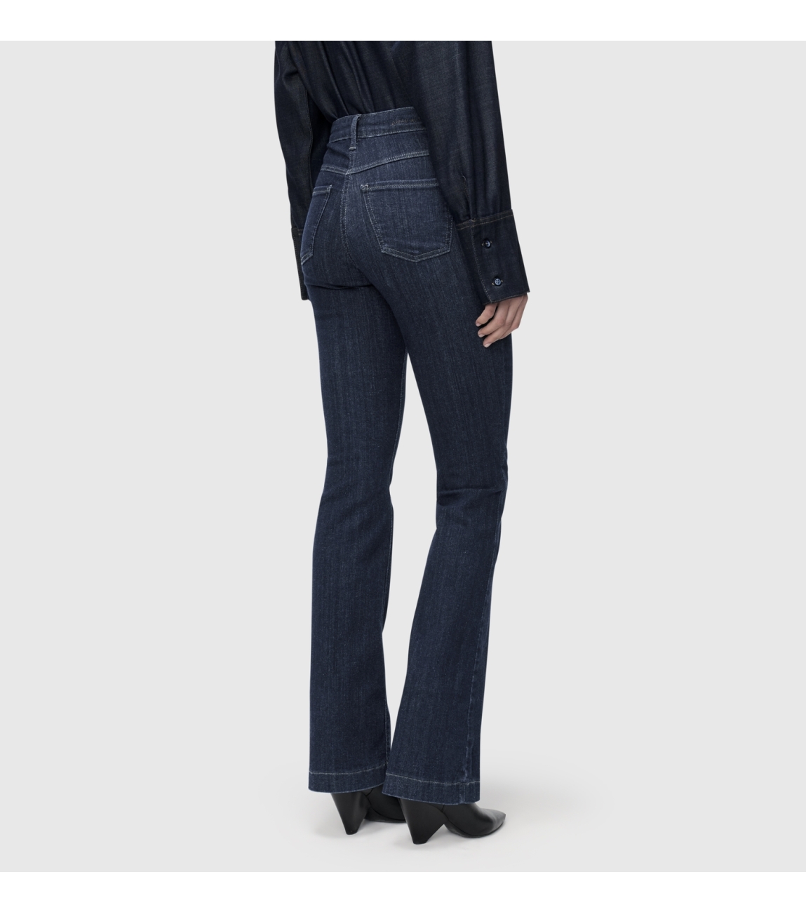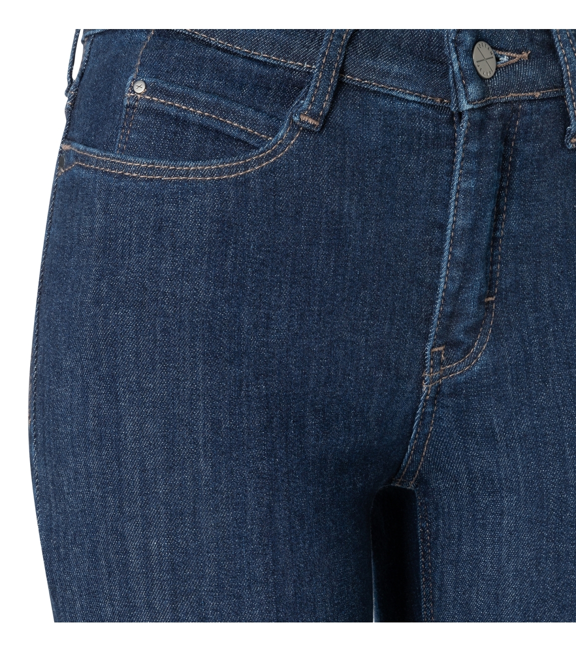 MAC DREAM BOOT D683 0358L542990. Dit flared model sluit door middel van een knoop en rits. Deze blauwe jeans van Mac is voorzien van verschillende zakken, riemlusjes en bevat stretch.