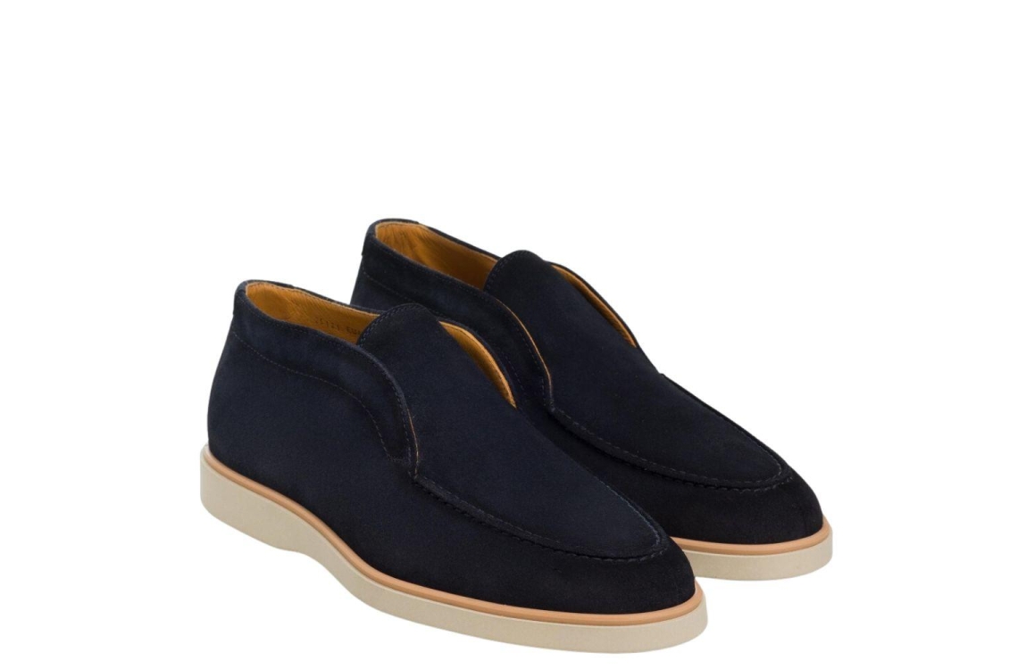 Magnanni schoenen 25121. Dit donkerblauwe instapper model is uitgevoerd in een suede kwaliteit en beschikt over een lichte zool.