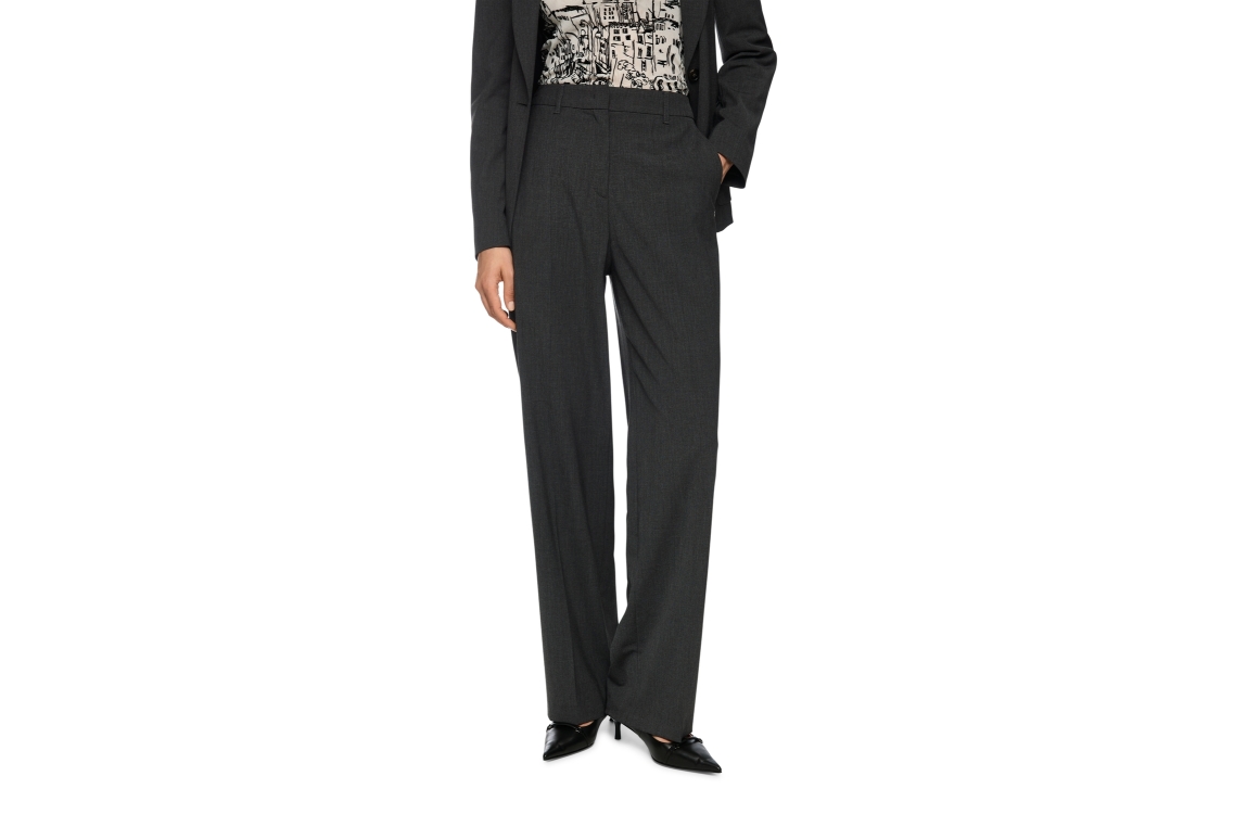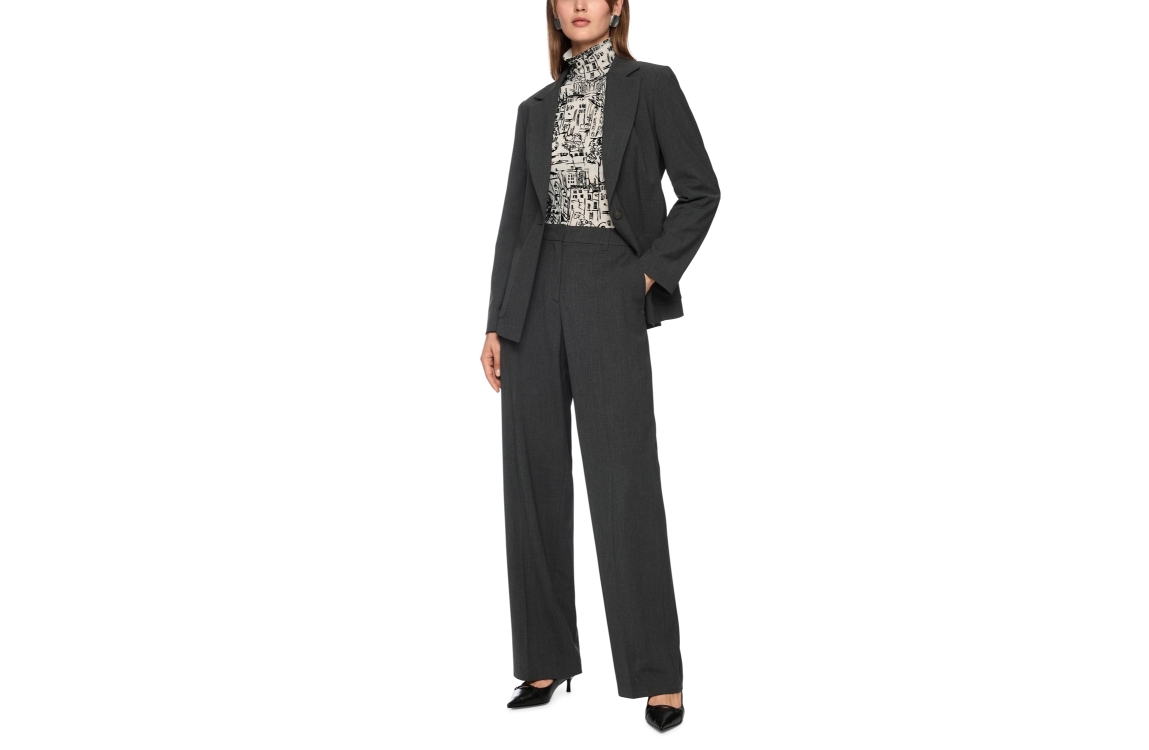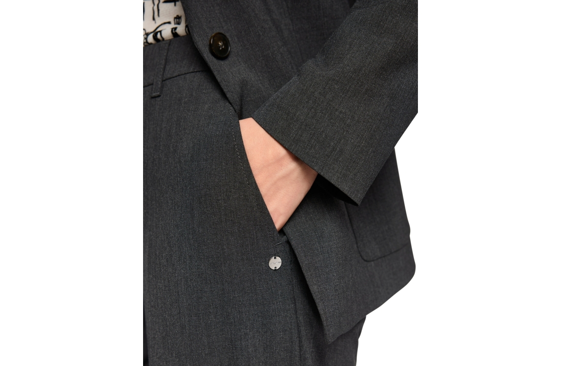 MarcCain Collections WUKARI 842 ZC 81.27 W77 pantalon. Dit rechtvallende model sluit door middel van een knoop en rits. Deze grijze pantalon van MarcCain is bewerkt met steekzakken en paspelzakken op de achterzijde.