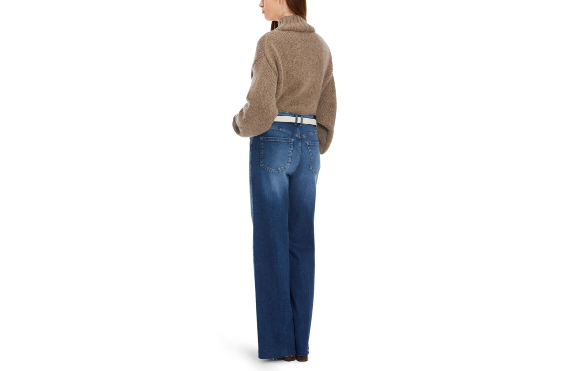 Marc Cain Collections broek Warri XC 82.19 D33. Dit straight fit model sluit door middel van een knoop en rits met ceintuurlussen. Deze denim broek van Marc Cain beschikt over twee steekzakken aan de voor- en achterzijde met een muntenzakje.