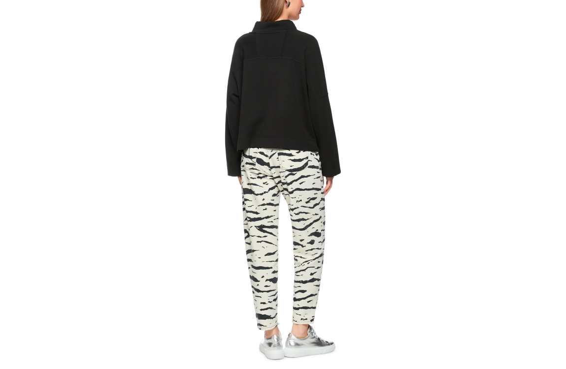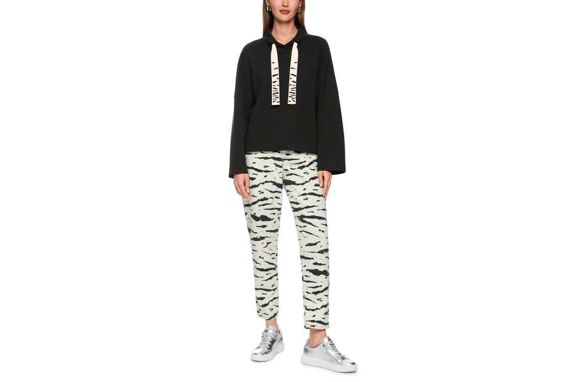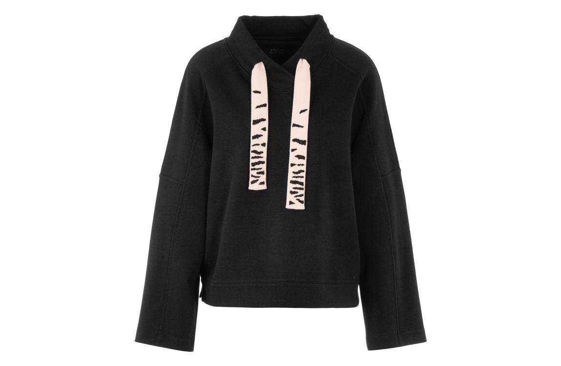 MarcCain Sports Sweat-Shirt 900 Black. Dit rechtvallende model is voorzien van een v-hals met capuchon en lange mouwen. Dit zwarte sweatshirt van MarcCain heeft een trekkoord in de kraag bewerkt met een dierenprint.