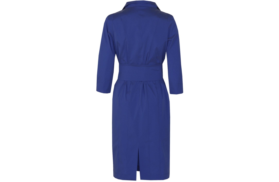 MOQ jurk Sybil2. Dit rechtvallend model is voorzien van een v-hals en heeft driekwart mouwen. Deze lavendel kleurige jurk van MOQ heeft een opstaande kraag, steekzakken, knoopsluiting voor en een strikceintuur.