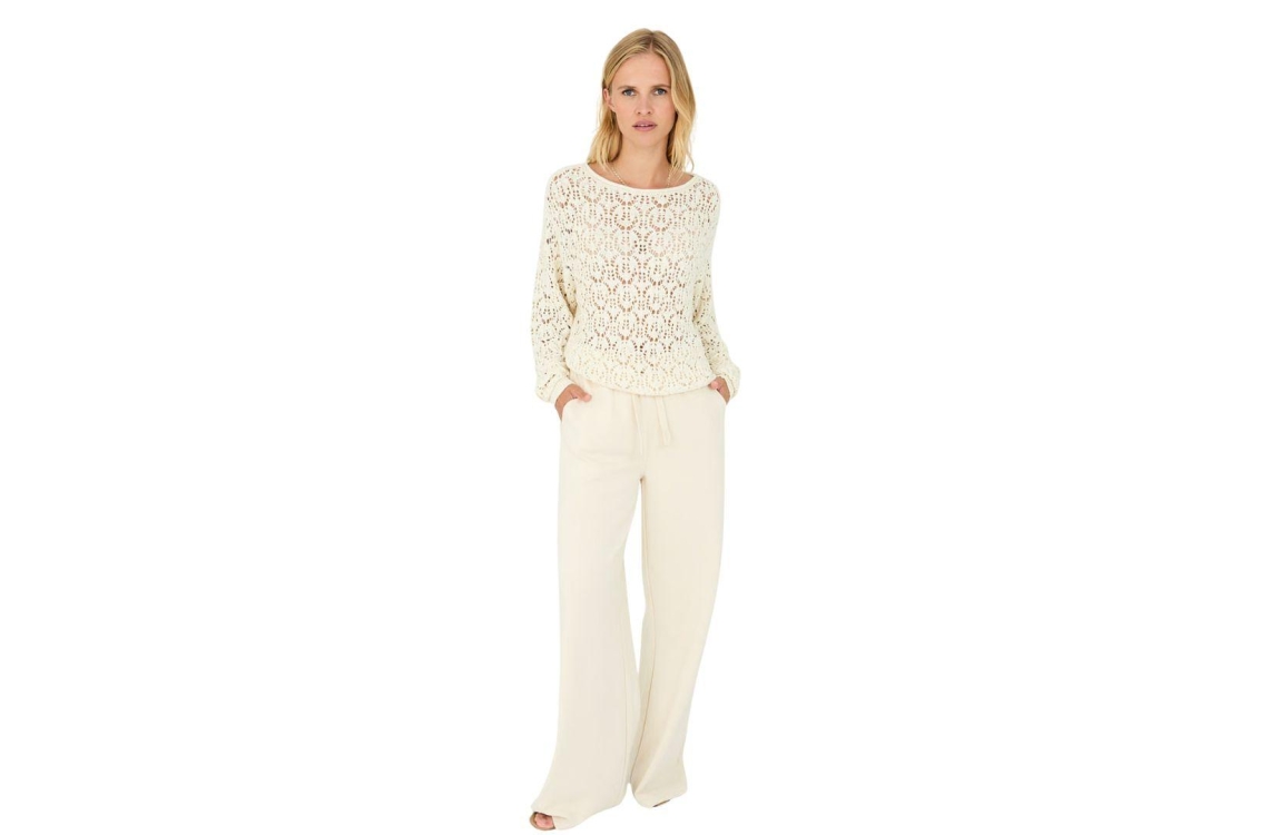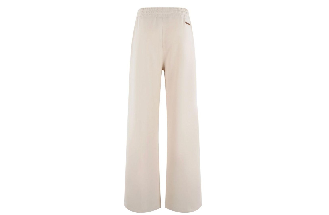 Moscow broek 66-02 Jo 360-1. Dit wide leg model sluit door middel van een elastische boord met trekkoord. Deze lichtbeige broek van Moscow is voorzien van twee steekzakken aan de voorzijde en is uitgevoerd in een comfortabele kwaliteit.