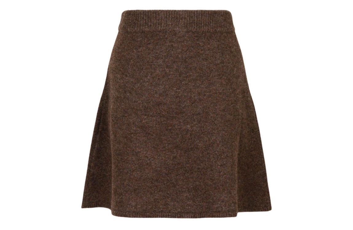 Neo Noir rok 161228 205. Dit soepelvallende model sluit door middel van een elastische boord. Deze bruine rok van Neo Noir is uitgevoerd in een fijn breisel en is afgewerkt met een ribgebreide boord.